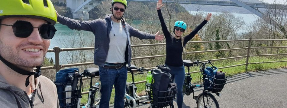 Endlich haben wir es auf den Shimanami Kaido Radweg geschafft, der über mehrere Brücken von Insel zu Insel führt – umgeben von toller Natur.