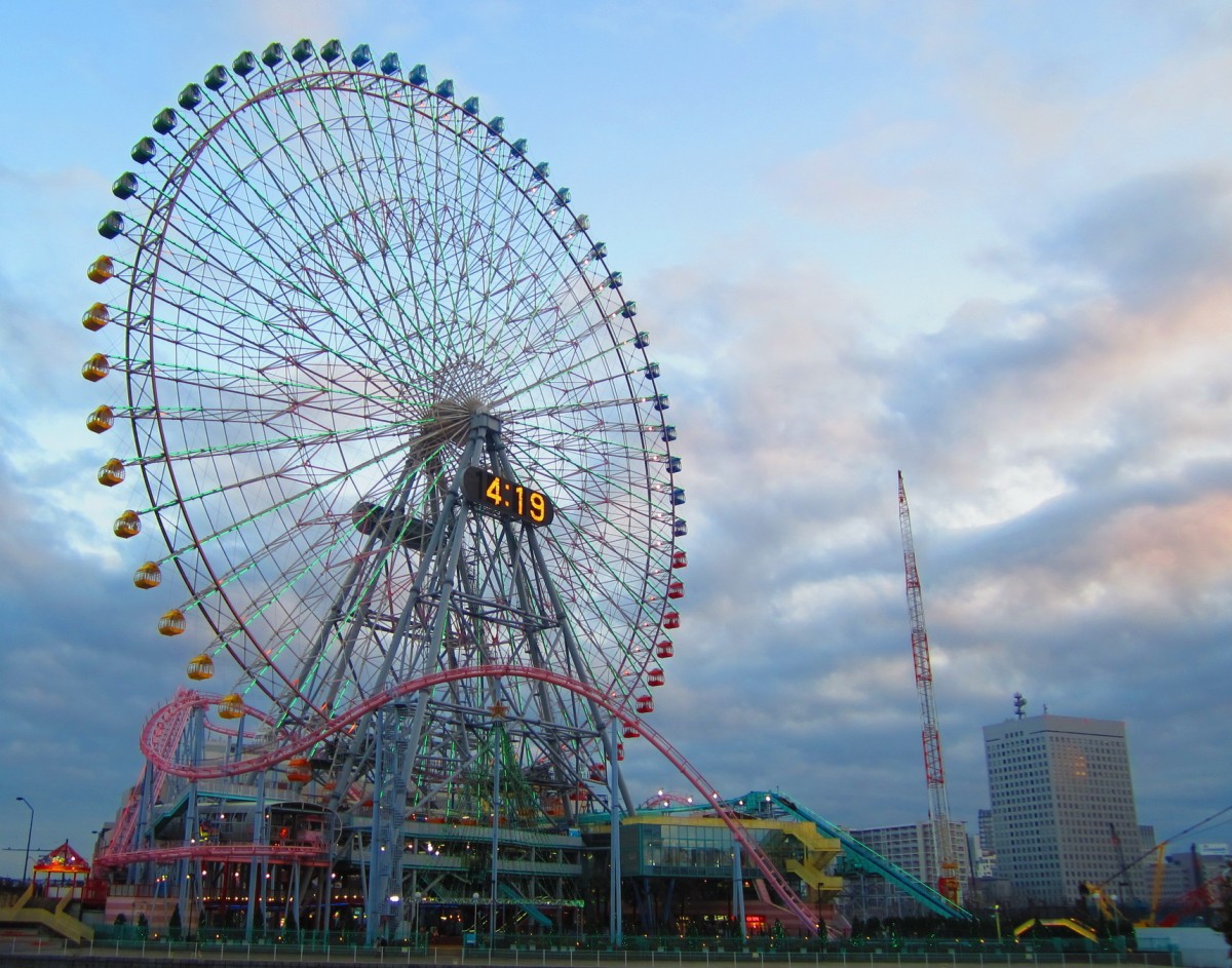 Gesagt, getan! Nachdem wir unseren Schlafmangel mit einem leckeren Frühstückt bekämpft haben, brachen wir mit der Minatomirailine gen Yokohama auf. Am Ziel angekommen besuchten wir den Queensquare und das HardRockCafe. Danach ging es weiter zum Riesenrad ,Cosmo clock 21′ im Cosmoworld-vergnügungspark der – dank der Uhrzeit – noch ganz leer gefegt war :)  Vom Riesenrad aus hatte man eine gute Aussicht über die Stadt und konnte sogar die gebogene Yokohama-bay-bridge sehen. Auf der anderen Seite des Flusses erkundeten wir das Schiff „Nippon Maru“ und den Landmarktower, das Gebäude mit dem aerodynamischen und (zur Erbauungszeit) schnellsten Aufzug der Welt. Im dazugehörenden Landmark-Plaza machten wir eine witzige entdeckung: Frauen erhalten wohl andere Guidemaps als Männer – denn Yanniks war himmelblau und etwas dünn. Marlis ihre hingegen quitsch-rosa und voll mit Einkaufsläden. Was aber beide gemeinsam hatten, war dass sie komplett auf japanisch waren und daher ziemlich unbrauchbar. Doch ein leckeres Rahmen-Restaurant konnten wir glücklicherweise auch ohne Guide finden. Später sind wir am Osanbashi-pier und Yamashita-Park gelaufen. Neben einen Feuerjonglier gab es dort das Museumsschiff Hikawa Maru zu sehen, welches in der Nacht beleuchtet war. Außerdem hatte man Ausblick auf den, bei Nacht beleuchteten Marinetower. In Japans größter und sauberster Chinatown haben wir uns ein paar Tempel angesehen und auf der Straße – neben unzähligen Makronen – chinesische Manchus probiert. Selbst dem Heimweg sind und die zahlreichen Pandas, die wir dort gesehen haben nicht mehr aus dem Kopf gegangen. Echt witzig die Japaner :)