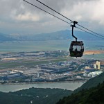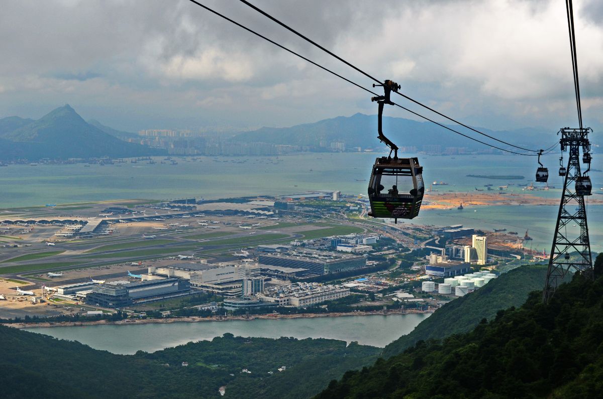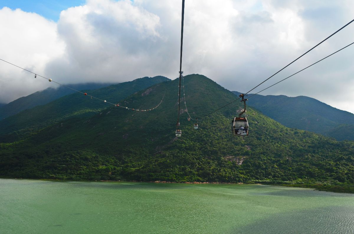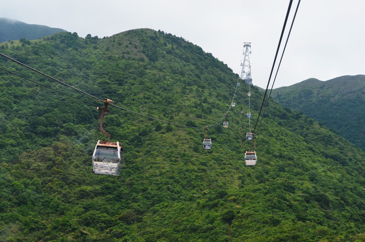 - Erste Etappe der 25-minütigen Seilbahnfahrt von Tung Chung nach Ngong Ping