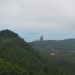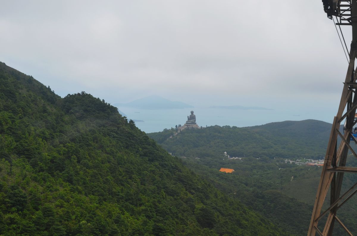 - Letzte Etappe der Seilbahnfahrt, man sieht den Buddha schon in der Ferne
