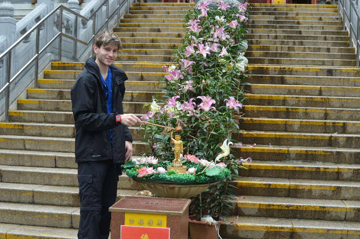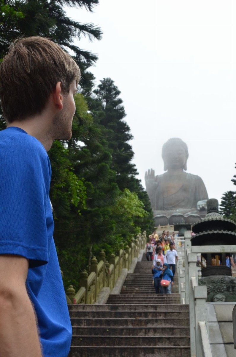 Schon der Weg dorthin war die Reise wert. Mit einer Gondel (cable car) und toller Aussicht fuhren wir auf den Lantao-Peak, nahe dessen Spitze das kleine Dorf ,Ngong Ping‘ liegt. Die dort lebenden Mönche kümmern sich um die riesen Baddhastatue und Gärten.