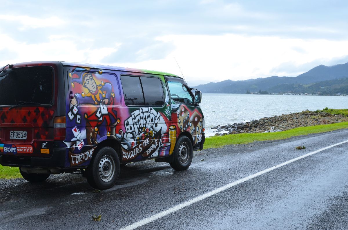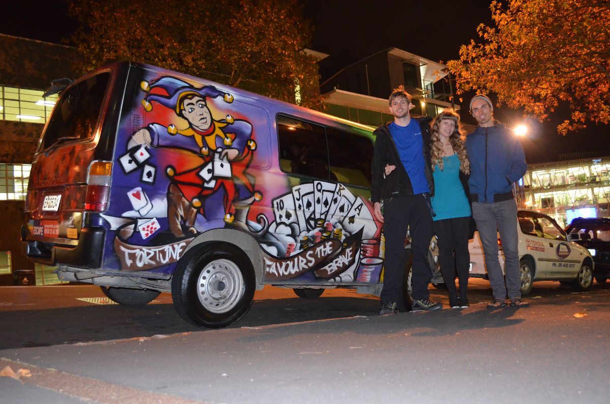 Unser erster Stop in Auckland war die Autovermietung um unseren Campervan abzuholen. Nach jeder Menge Papierkrieg und einer kurzen Einweisung bekamen wir unser Zuhause für die nächsten 2 Wochen.