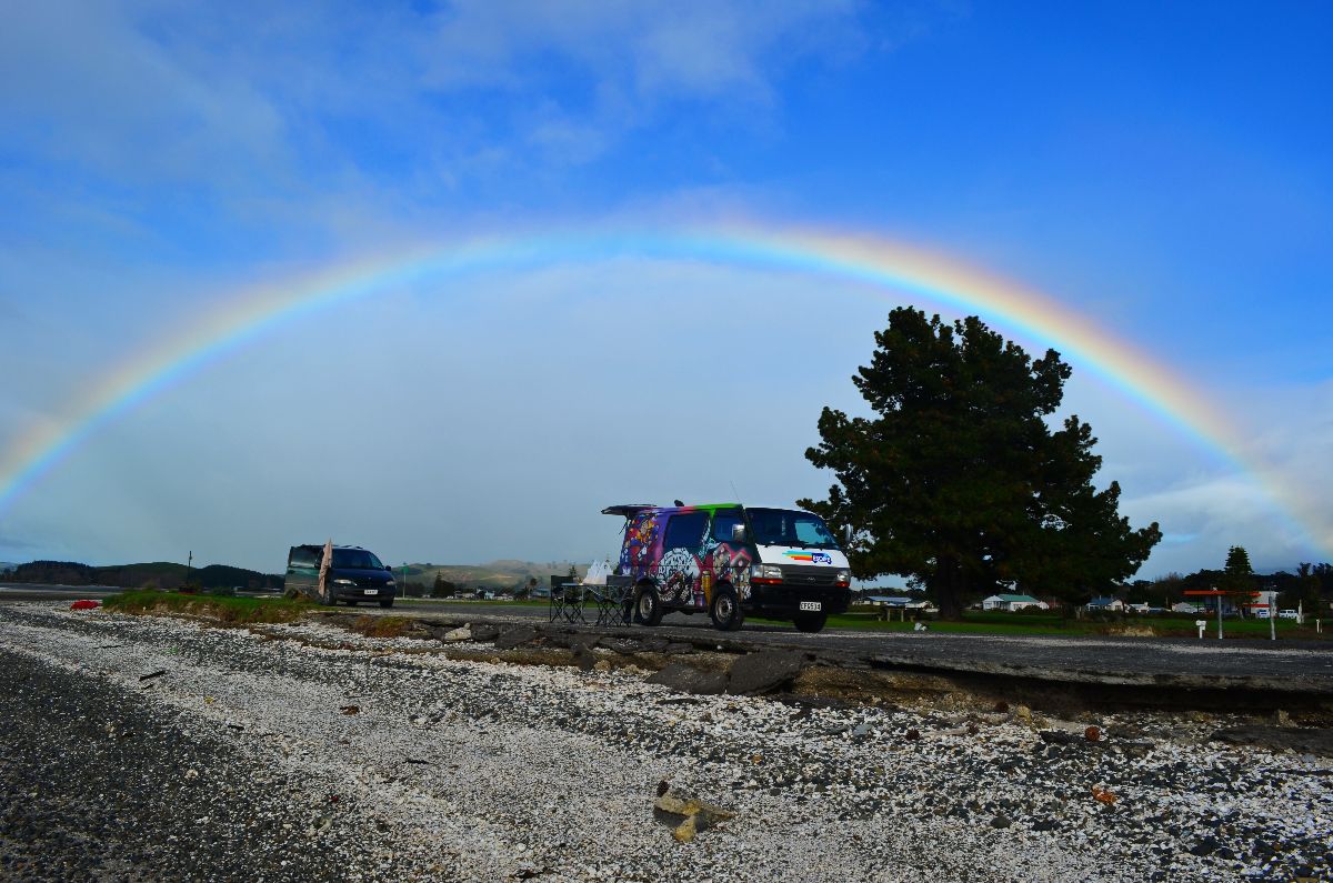 Die Nacht verbrachten wir das erste Mal in unserem Camper. Auf halbem Weg nach Coromandel machten wir es uns auf dem Gelände eines Fischereivereins bequem. Diese bieten das Campen umsonst an und stellen sogar Toiletten zur Verfügung – vom Meerblick mal ganz abgesehen ;P