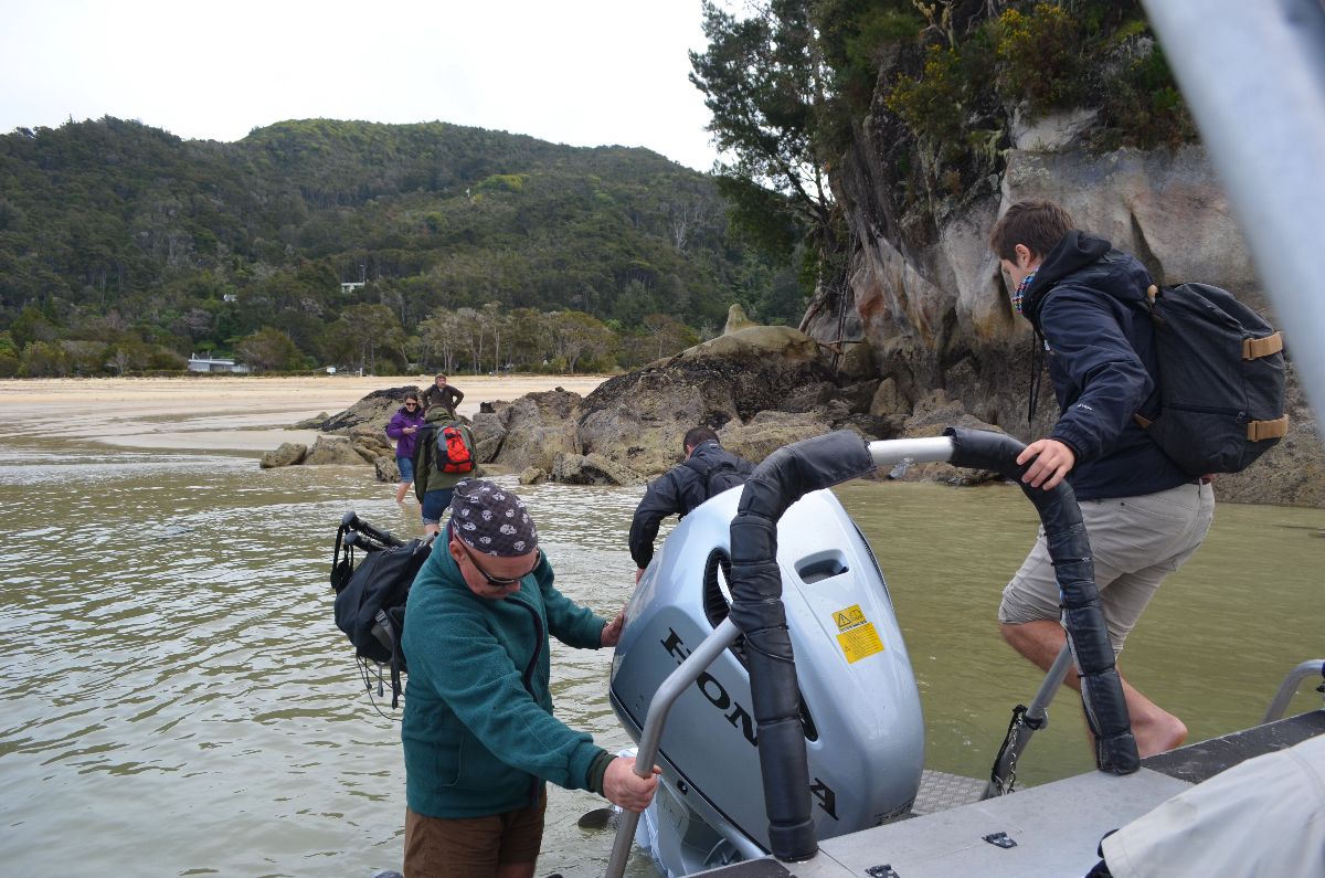 Das war auch gut so, denn wir waren den ganzen Tag im Abel Tasman Nationalpark wandern. Morgens ging es mit dem Wassertaxi bis zum Bark Bay. Dabei handelt es sich um ein Speedboot, das unterschiedliche Ziele im Park anfährt und dadurch die Wanderungen verkürzen kann. Das haben auch wir uns zu Nutze gemacht.