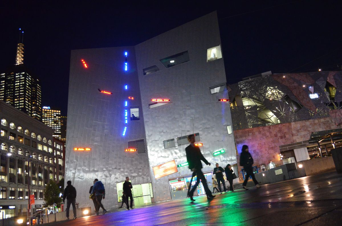 Am besten gefallen hat uns jedoch der Federationsquare – die Stadtmitte Melbournes mit einem riesigen Bildschirm, toller Beleuchtung und WLAN :)