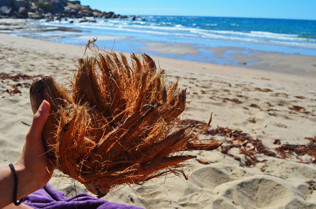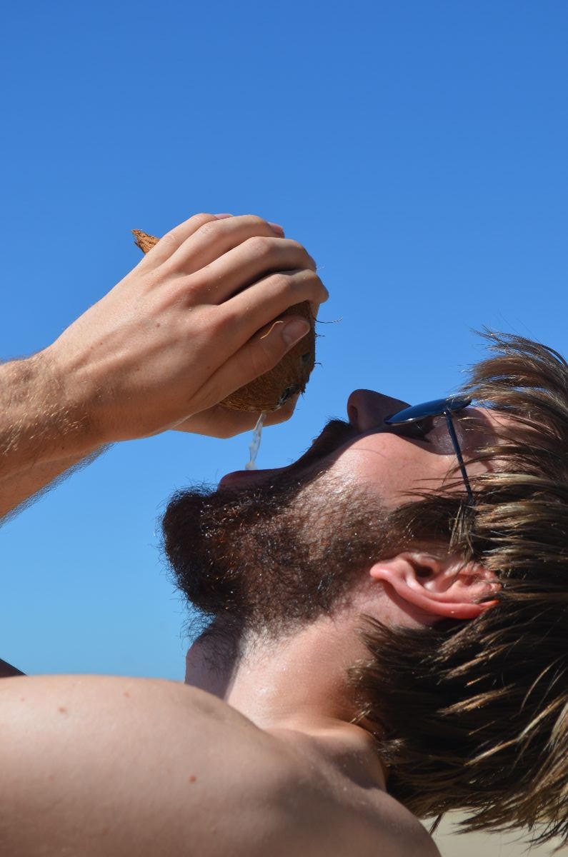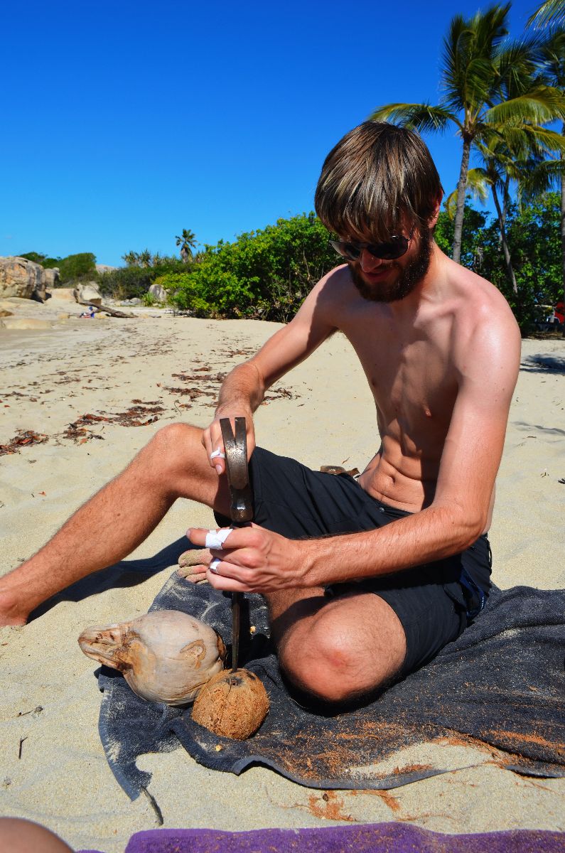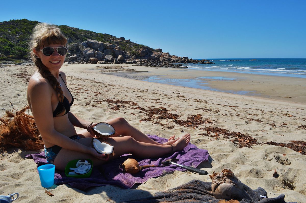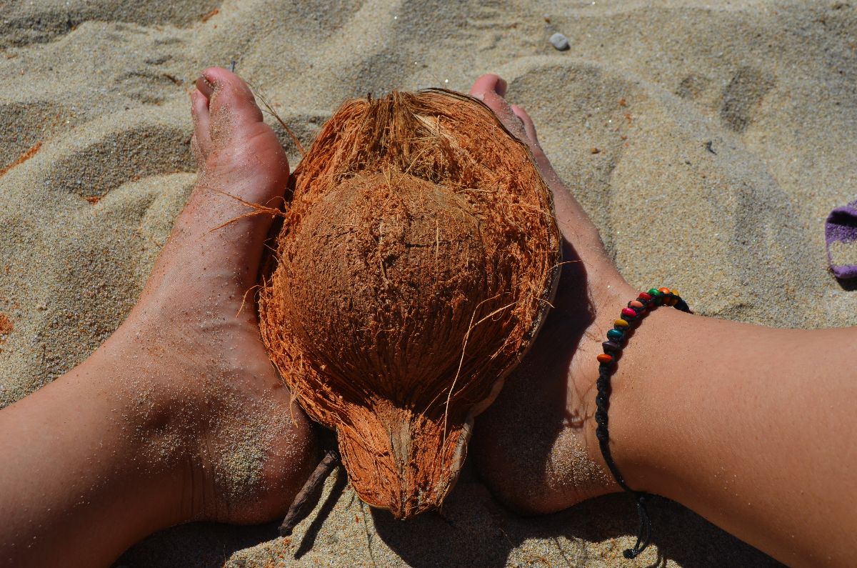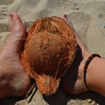 Als Erfrischung gegen die heiße Sonne haben wir ein paar Kokosnüsse ,aufgetrieben‘. Das heißt, wir haben eine Frucht vom Baum runter geschossen und uns, nachdem das gar nicht so einfach war, entschieden die restlichen lieber auf dem Boden zu sammeln.