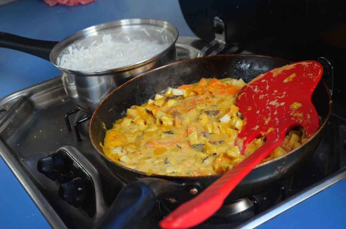 Mit einer deutlicher Lernkurve öffneten wir nach und nach fünf Nüsse und tranken die köstliche Milch. Das Fruchtfleisch haben wir aber nicht alles pur geschafft und daher zum Kochen verwendet – echt lecker mit Curry Reis :)