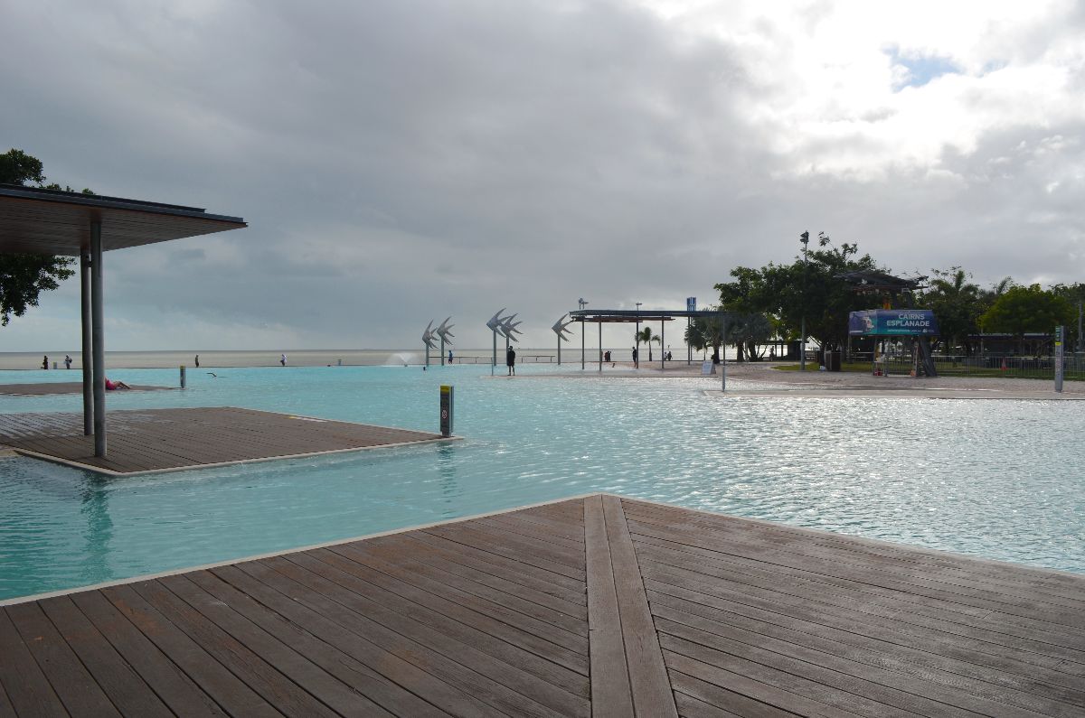 Zum Schluss ging es nach Cairns, dem eigentlichen Endziel unserer Reise hier in Australien. Wir genossen die letzten Tage im Park oder Strand und plantschten mit den Füßen im klaren Wasser der Poollagune.
