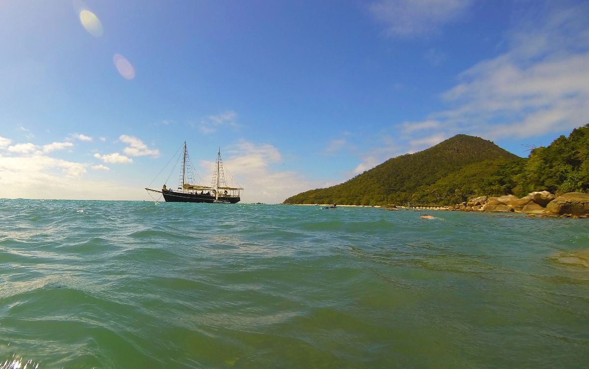 - Blick auf das Schiff beim Schnorcheln