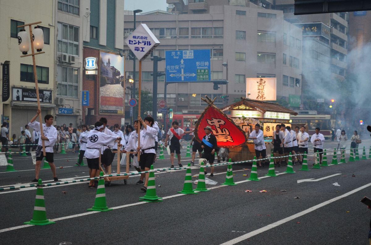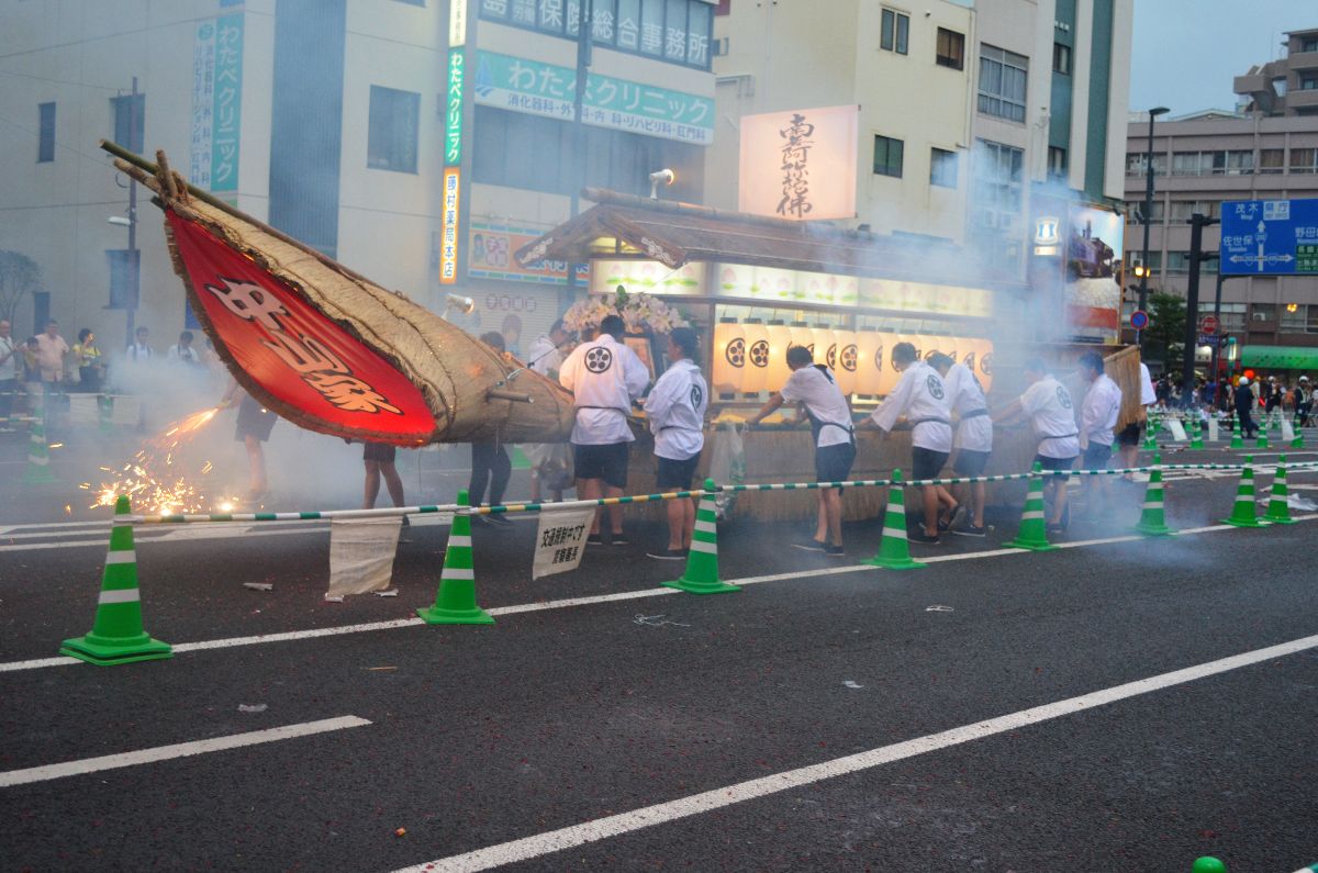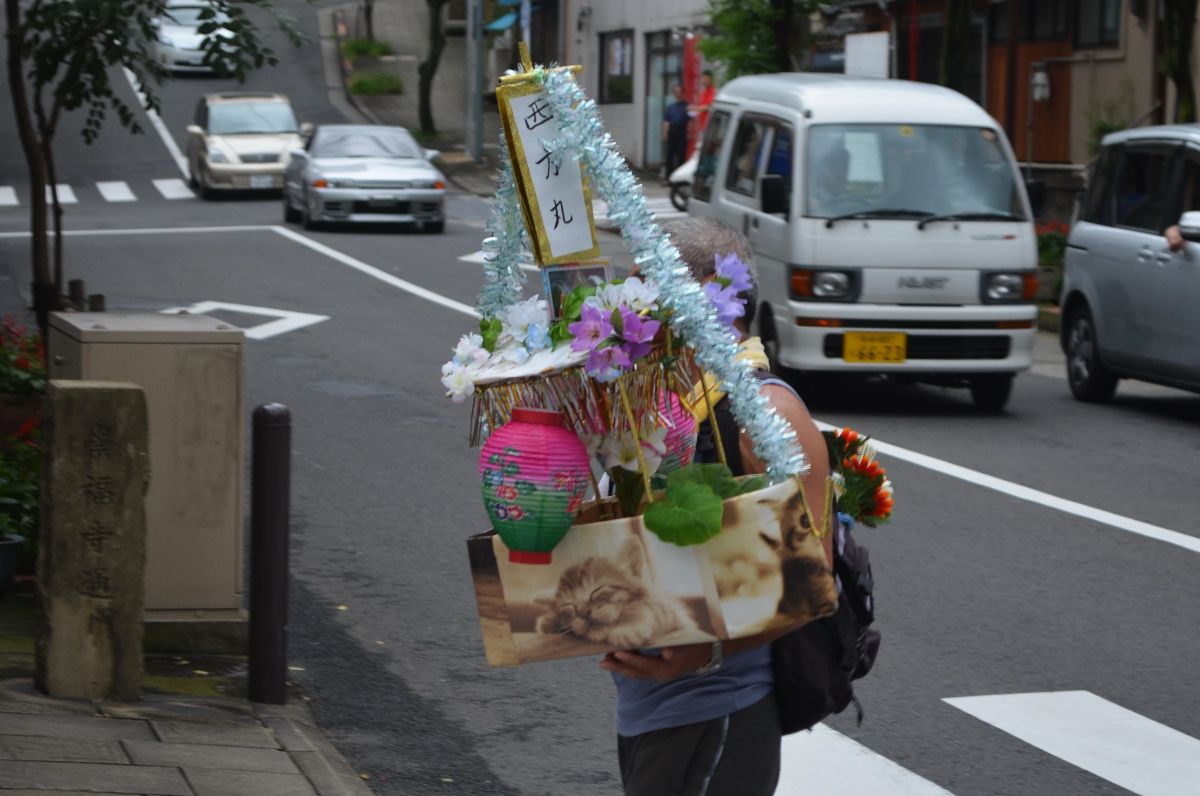 Aber nicht um noch mehr einzukaufen, sondern weil heute ein besonderer Tag ist: Zum Ende der Obon-Feiertage werden die in diesem Jahr verstorbenen Geister, die während Obon zu Besuch waren, wieder nach Hause geschickt. Um dies zu bewerkstelligen bauen die Familienangehörigen dem/der Verstorbenen ein (meist) prachtvolles Boot und weisen ihnen mit jeder Menge Krach den Weg ins Wasser, welches als Passage in ihre Welt dient.