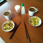 Angekommen wirkten wir mit einem heißen Bad erst einmal dem Muskelkater entgegen, bevor wir in die bereit gelegten Yukata (schlichte Kimono) schlüpften und den Abend mit japanischen Süßkartoffeln ausklingen ließen :]