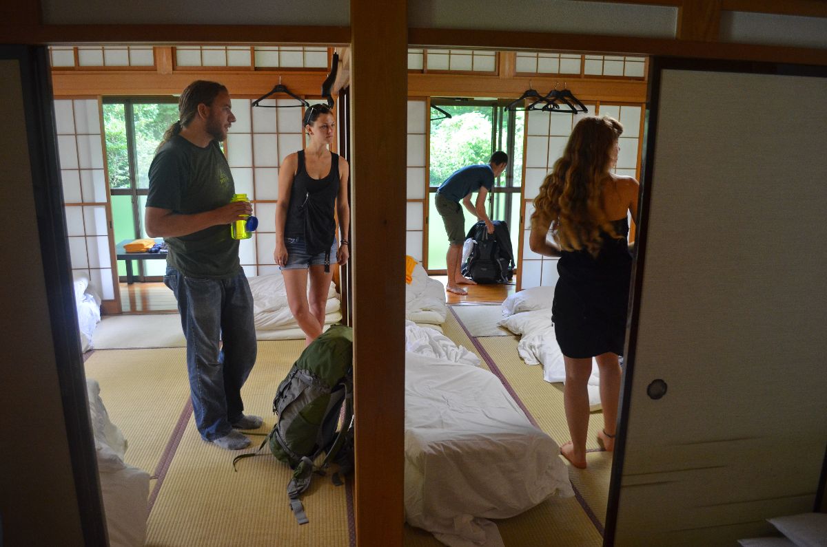 Wir hatten ein paar japanische Betten (Tatami = man schläft auf Futonmatten auf dem Boden) in einem Wohnhaus gemietet und hatten die komplette Wohnung zunächst ganz für uns alleine, da sich durch die Obon-Feiertage, die nun begonnen haben, alle auf den Weg zu ihren Familien machten. Einfach genial!