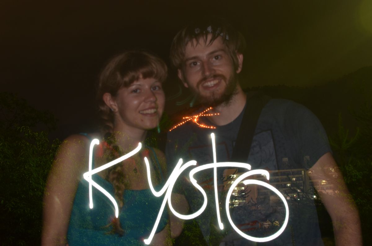Eines nach dem anderen leuchteten dann die Kanji ,DAI‘ ,MYO‘ und ,Funagata‘ an den Kyoto umgebenden Bergketten auf. Die Sugoi-Rufe (jap. beeindruckend) der Einheimischen um uns herum steckten richtig an und insgeheim freuten wir uns auch über die Tatsache, dass wir den guten Ausblick über die Köpfe der unzähligen kleineren Japaner hinweg genießen konnten – Ja, auch Marlis war groß genug xP