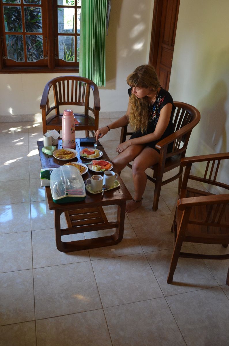 Aproppos übernachten – wir haben es hier richtig gut erwischt und lebten in einem Homestay, d.h. bei einer Familie mit großem Grundstück und vier Bungalows ,im Garten‘. Eines der Häuser stand uns zur Verfügung und jeden Morgen gab es leckeres Obst mit Pancakes, Bananenpfannkuchen oder ähnlichem <3