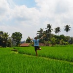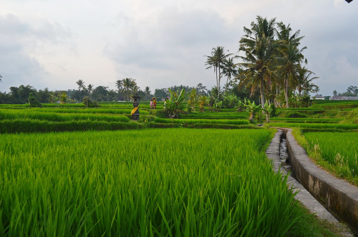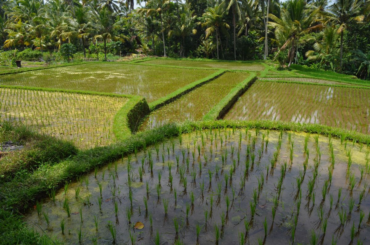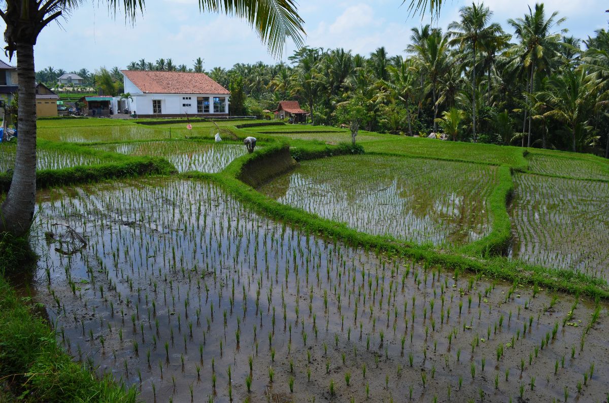 - Umrundet von grünen Reispflanzen