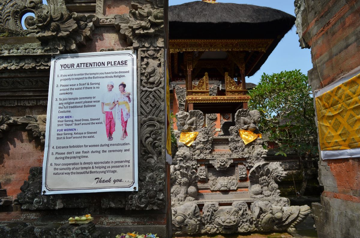 Unsere erste Tour führte zu den umliegenden Reisplantagen der Stadt. Wir waren ganz überrascht zu erfahren, dass es zwei balinesische Sprachen gibt (eine für die höher gestellten und eine für die normalen Leute) die jeweils die Zugehörigkeit des Sprechers zu einer Kaste ausdrückt. Jede Sprache kennt verschiedene Begriffe für jede einzelne Wachstumsphase des Reises (und das sind echt viele!) doch was die Vielfalt der Namen von Kindern einfacher Menschen angeht, haben beide Sprachen ziemlich gespart. Es gibt wohl gerade einmal 4 verschiedene Namen. Das klingt so mies, dass wir erst nochmal genauer nachforschen müssen bevor wir es wirklich glauben o.O