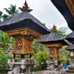 Da es beim letzten Mal so gut geklappt hat, wagten wir uns erneut mit den Rollern auf die chaotische balinesische Straße. Dieses Mal hatten wir den Besuch zweier Tempel im Sinn: den Pura Gunung Kawi (Rocky Temple) und den Pura Tirta Empul (Holy Spring Temple). Auf dem Gelände des Gunung Kawi findet man eine ganze Steinhöhlensiedlung sowie verschiedene Tempel die in zwei riesige Felswände auf beiden Seiten eines kleinen Flusses gehauen wurden. Der Legende nach wurden diese Tempel (wie ziemlich viel hier in der Gegend) durch die viel zu langen Fingenägel des Riesens Kebo Iwa geformt. Wer die Steintempel tatsächlich ausgehöhlt hat ist leider nicht bekannt, doch das Entstehungdatum liegt vermutlich in der Mitte des 10. Jahrunders. Besonders gut gefallen hat uns hier, dass viele Anlagen noch gut erhalten sind und sogar betreten werden können. Danach besichtigten wir den Tirta Empul Tempel. Der Name des Tempels bedeutet heilige Quelle (Tirta = heiliges Wasser, Empul = Quelle) und verrät daher schon was sich in seinem Zentrum befindet. Wir haben uns diesen Tempel ausgesucht, da er einer der ältesten (schon ca. 960 n. Chr.) und dennoch gut erhaltenen Tempel Balis ist. Von seiner heiligen Quelle aus führen verschiedene Wasserabläufe in große Reinigungsbecken. Wir waren etwas überrascht zu sehen, dass tatsächlich der ein oder andere Besucher in voller Tempelkleidung darin baden gegangen ist. Bei der Reinigung hat jeder Wasserstrahl eine spezielle Funktion, beispielsweise steht ein Strahl für die Reinigung des Geistes, ein anderer reinigt von dem Bösen und wieder ein anderer soll gut gegen Krankheiten sein. Da wir uns aber nicht sicher waren welcher was bewirkt waren wir selbst lieber nicht baden. Wollten ja nicht noch aus Versehen was falsches bewirken xD