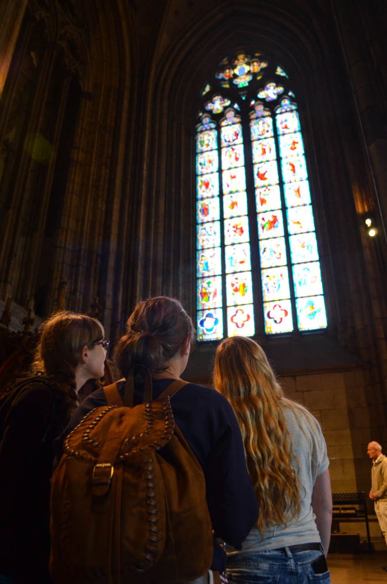 Da Köln jede Menge Kirchen hat – und wir schließlich einen Mönch dabei hatten – waren die bekanntesten Kirchen natürlich Pflichtprogramm. Dazu zählen z. B. der Kölner Dom und die Groß-St.-Martin-Kirche. Der Kölner Dom ist sogar die größte gotische Kirche in Nordeuropa und beherbergt den Dreikönigschrein, der auch auf dem Stadtwappen verewigt wurde.