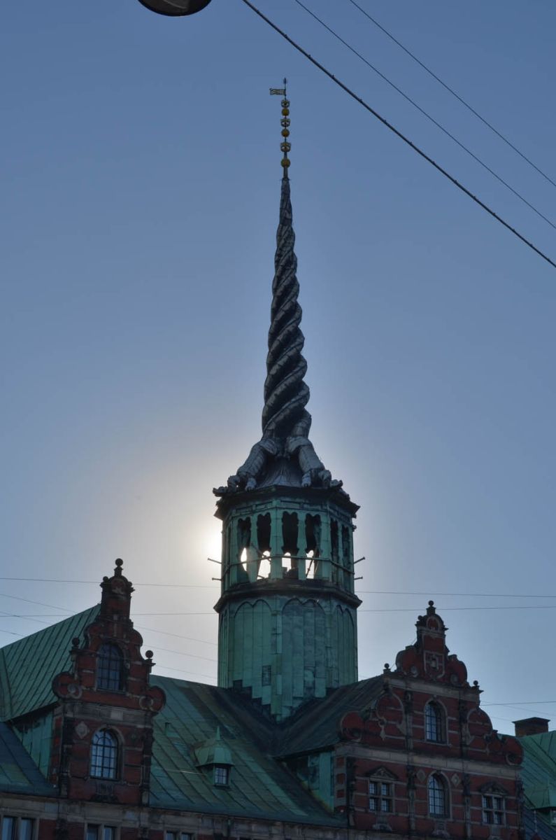 ~ Alte Börse mit verschlungenen Drachenschwänzen als Turm