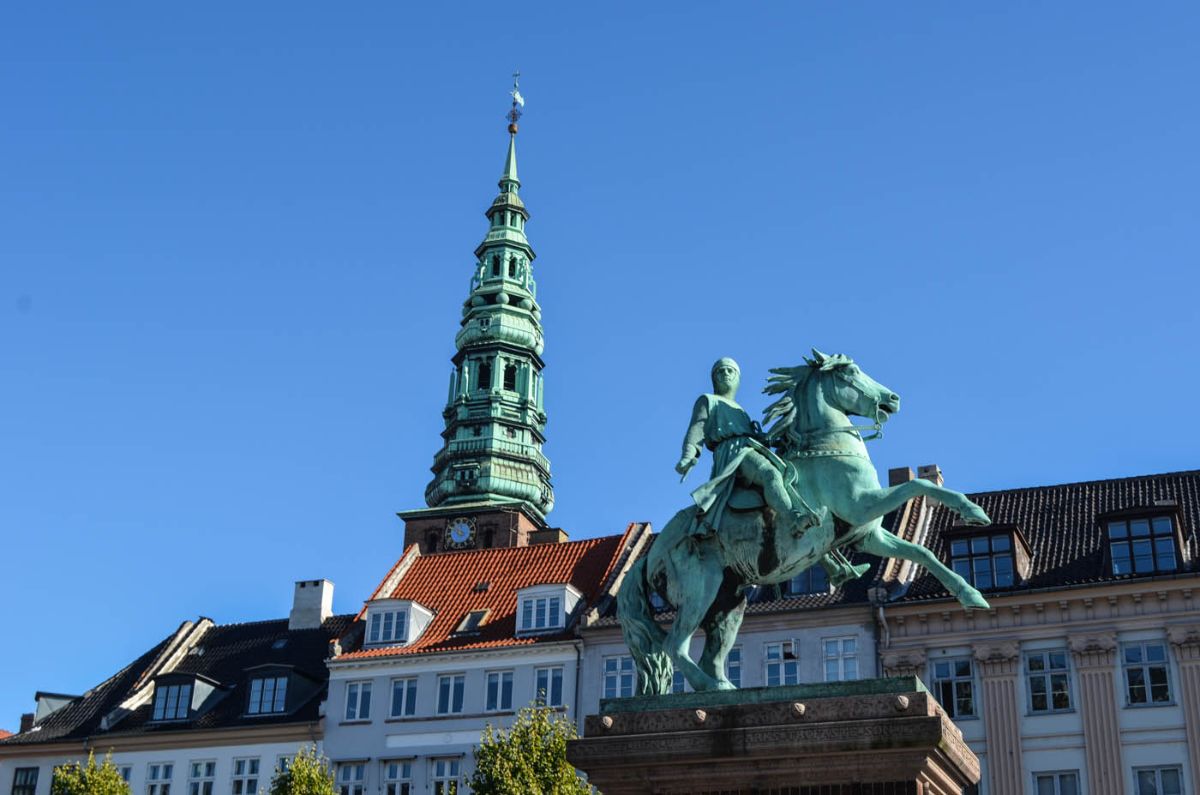 ~ Rådhuspladsen mit dem Rathaus und einer Abbildung von Bischof Absalon, der Kopenhagen gründete und dann loszog um Vikinger zu jagen