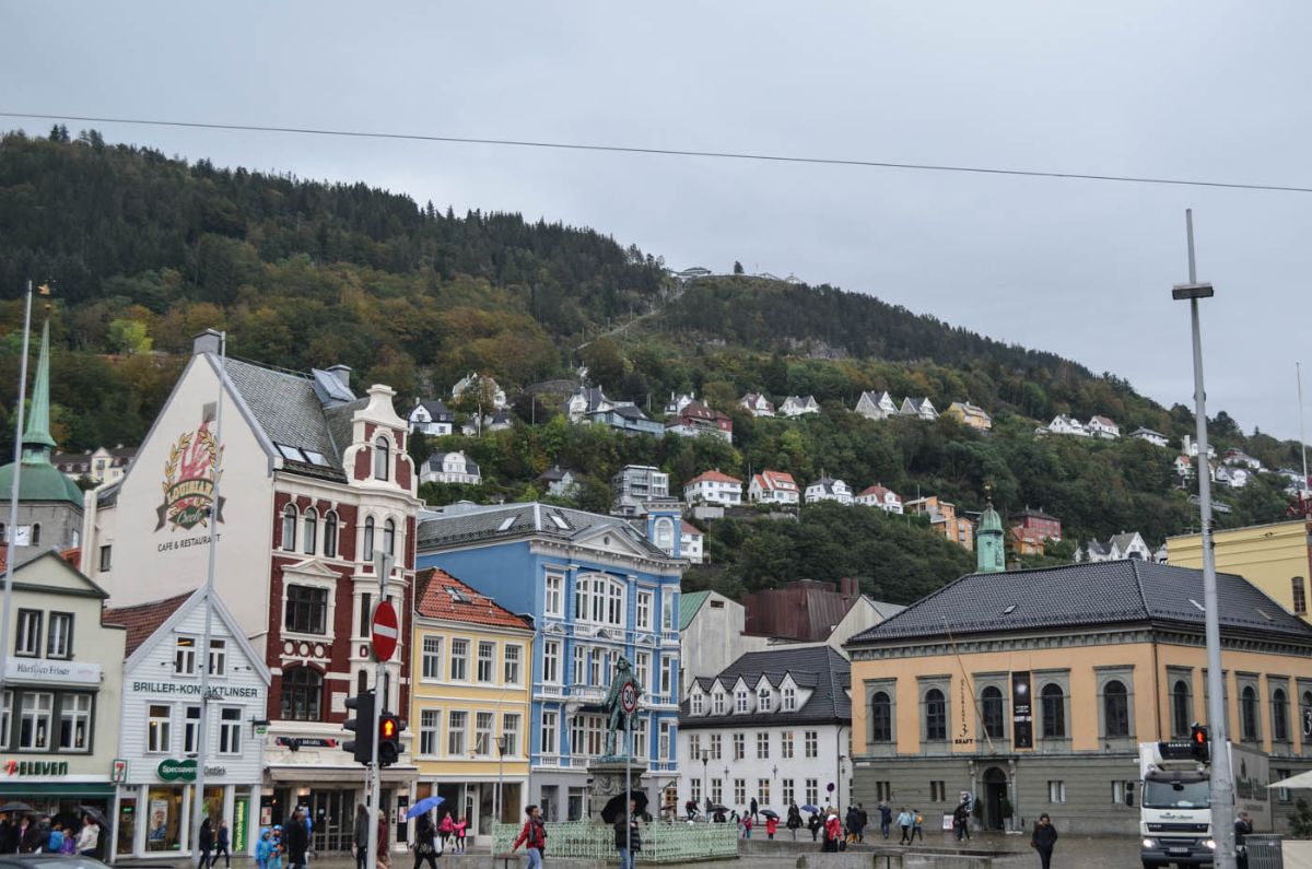 Als erstes sahen wir uns gestern und heute die Stadt Bergen an und nun reisen wir weiter nach Oslo. Bergen ist die zweitgrößte Stadt Norwegens und liegt, passend zum Namen, zwischen sieben Bergen und natürlich jeder Menge Fjorde.