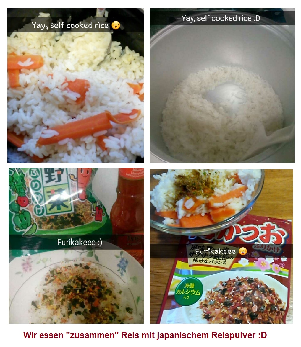 - Wir essen ‚zusammen‘ Reis mit jap. Reispulver