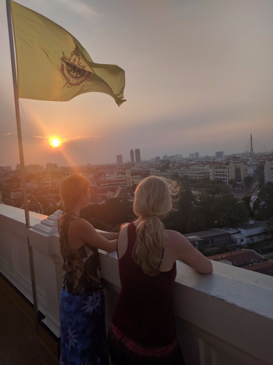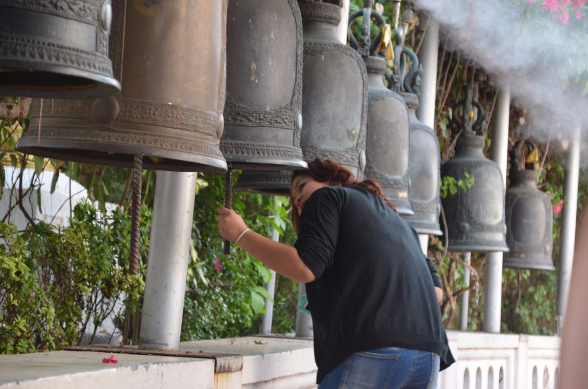 Heute gingen wir zum Tempel Wat Saket, besser bekannt als ‚golden Mount‘. Diesen Namen verdient sich der Tempel durch die riesige goldene Chedi-Pagode für die man über 318 Stufen erklimmen muss. Das Panorama Bangkoks entschädigt aber für den Aufstieg :)