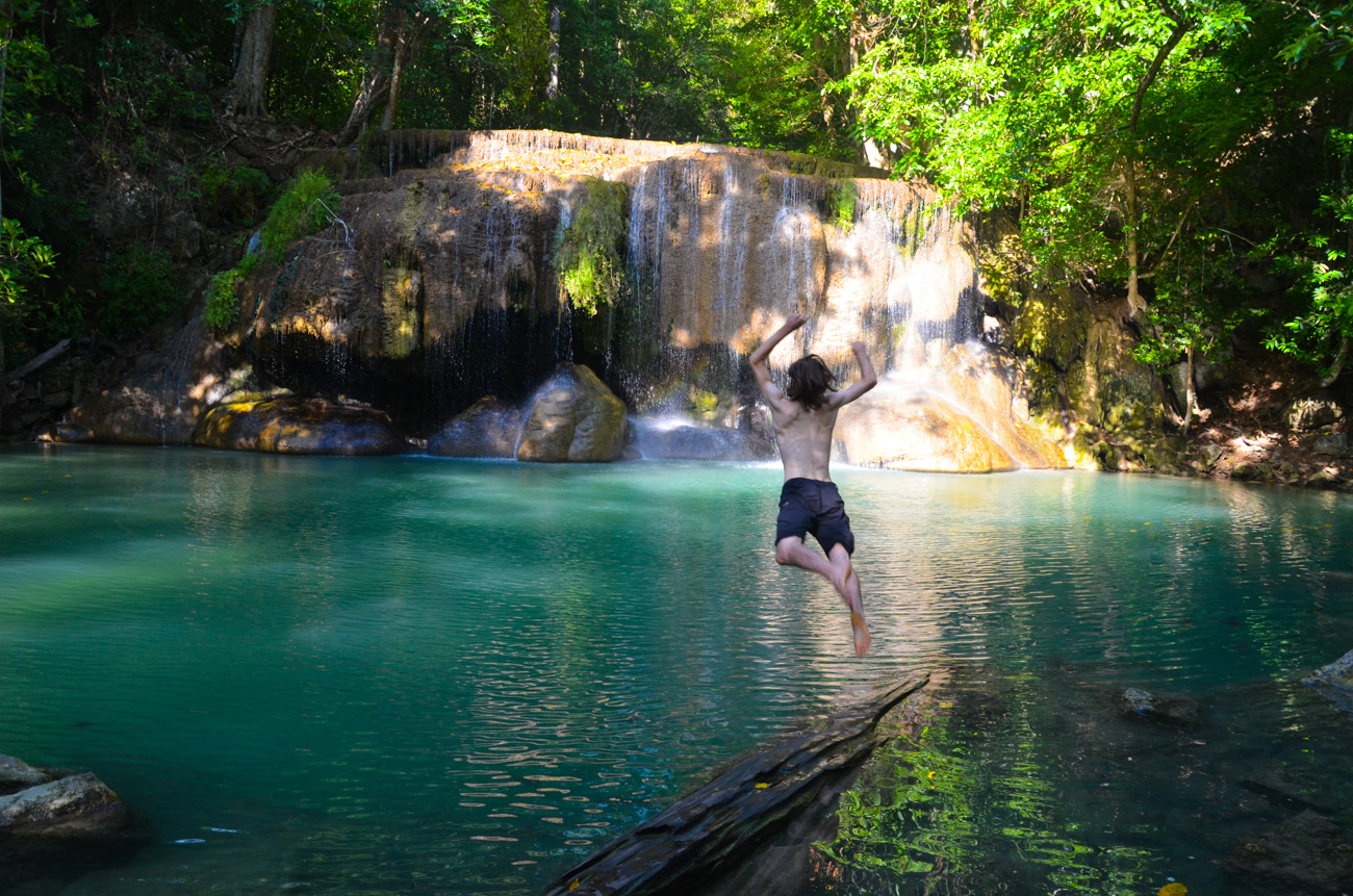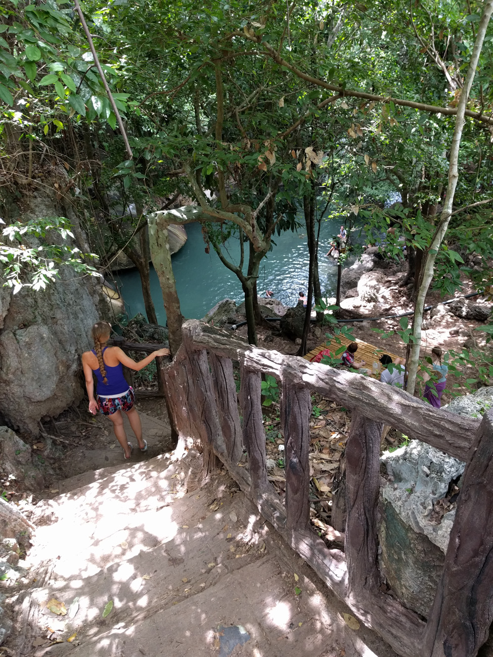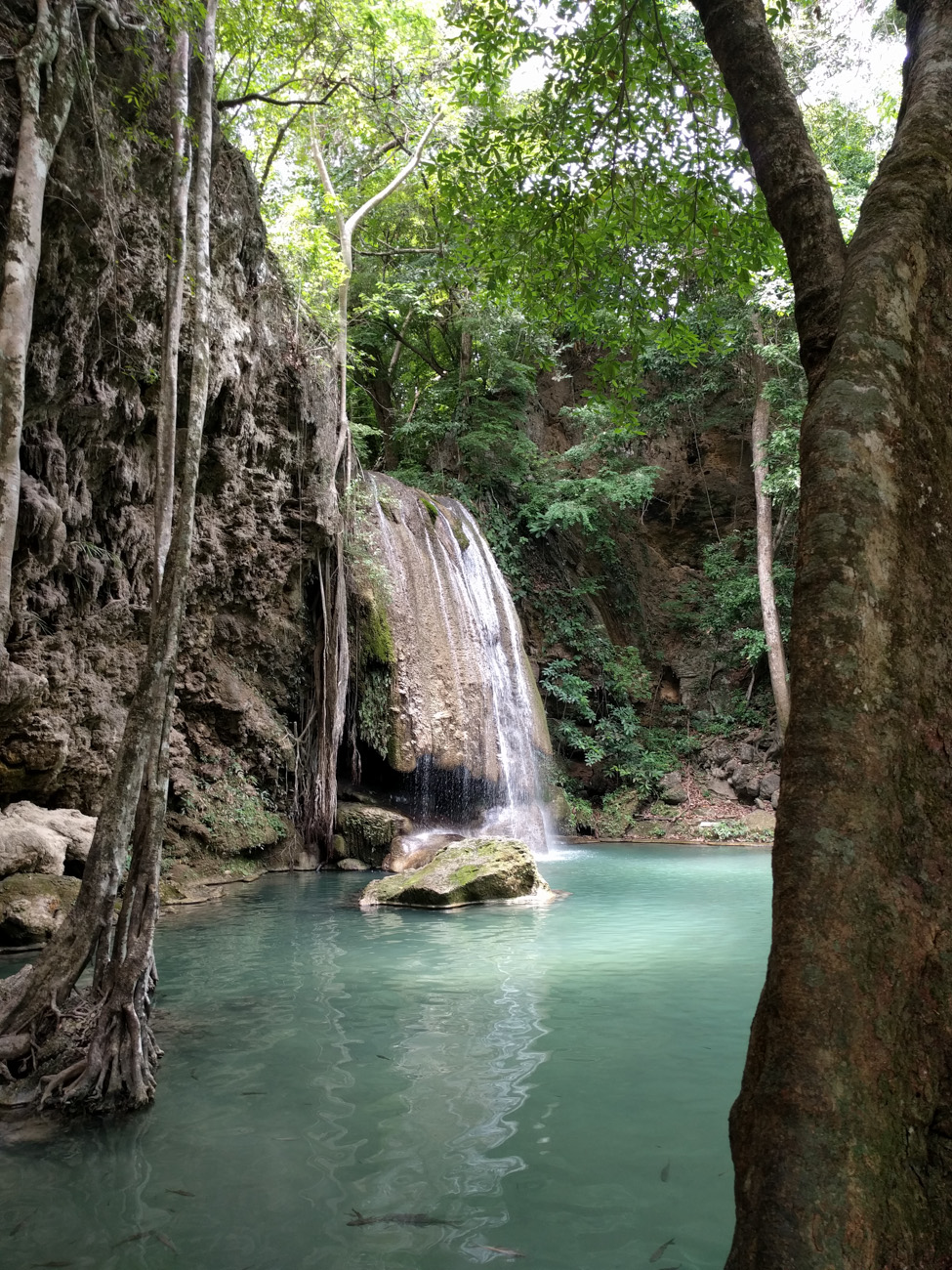 Am ersten Tag besuchten wir die 7 Level des Erawan Wasserfalls, dabei machte wir von Stufe zu Stufe eine kleine Wanderrung. Jeder Abschnitt des Wasserfalls hat ein natürliches Schwimmbecken voller klarem kühlen Wasser – genau das richtige beim Wandern :)
