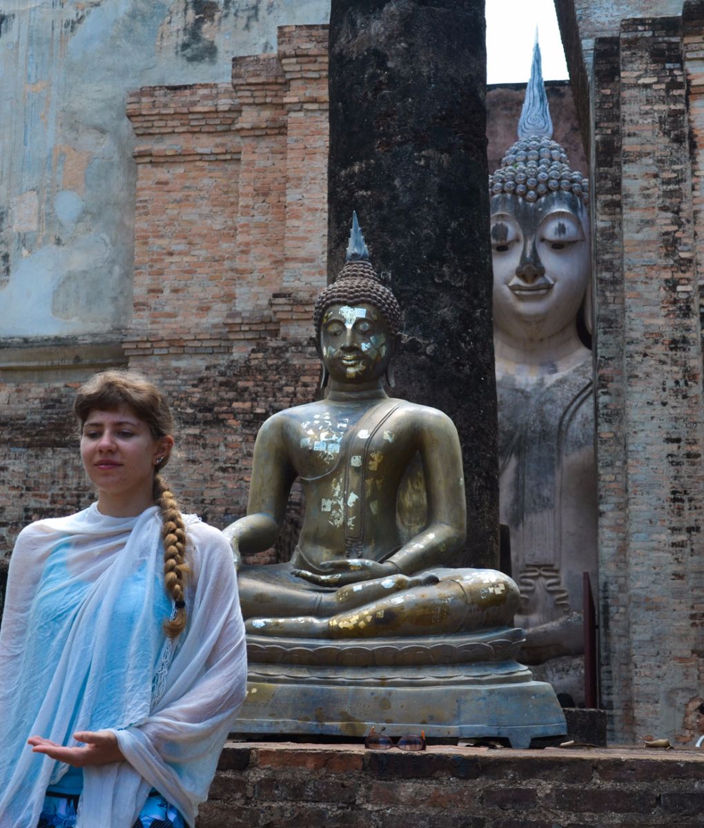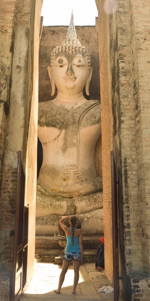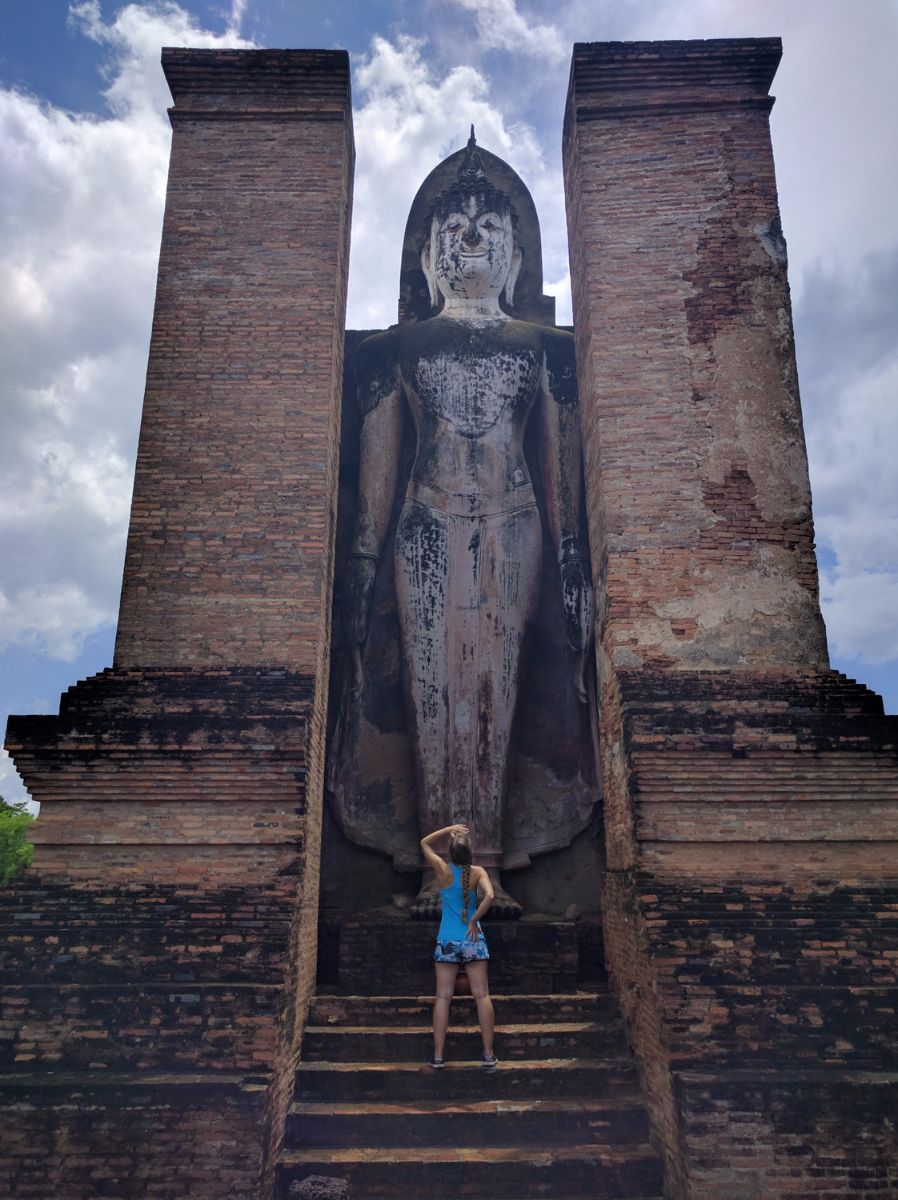 Die Tempel, Mauern, Statuen und ehemaligen Paläste waren wirklich beeindruckend und haben bei uns große Vorfreude auf die Angkor Ruinen in Kambodscha geweckt. Denn Sukhothai und Angkor haben teilweise ähnliche Baustile, da beide einmal Teil des Khmer Reiches waren, als die se noch den Großteil Südostasiens regierten – daher musste Siam seine Hauptstadt übrigens verlagern ;P