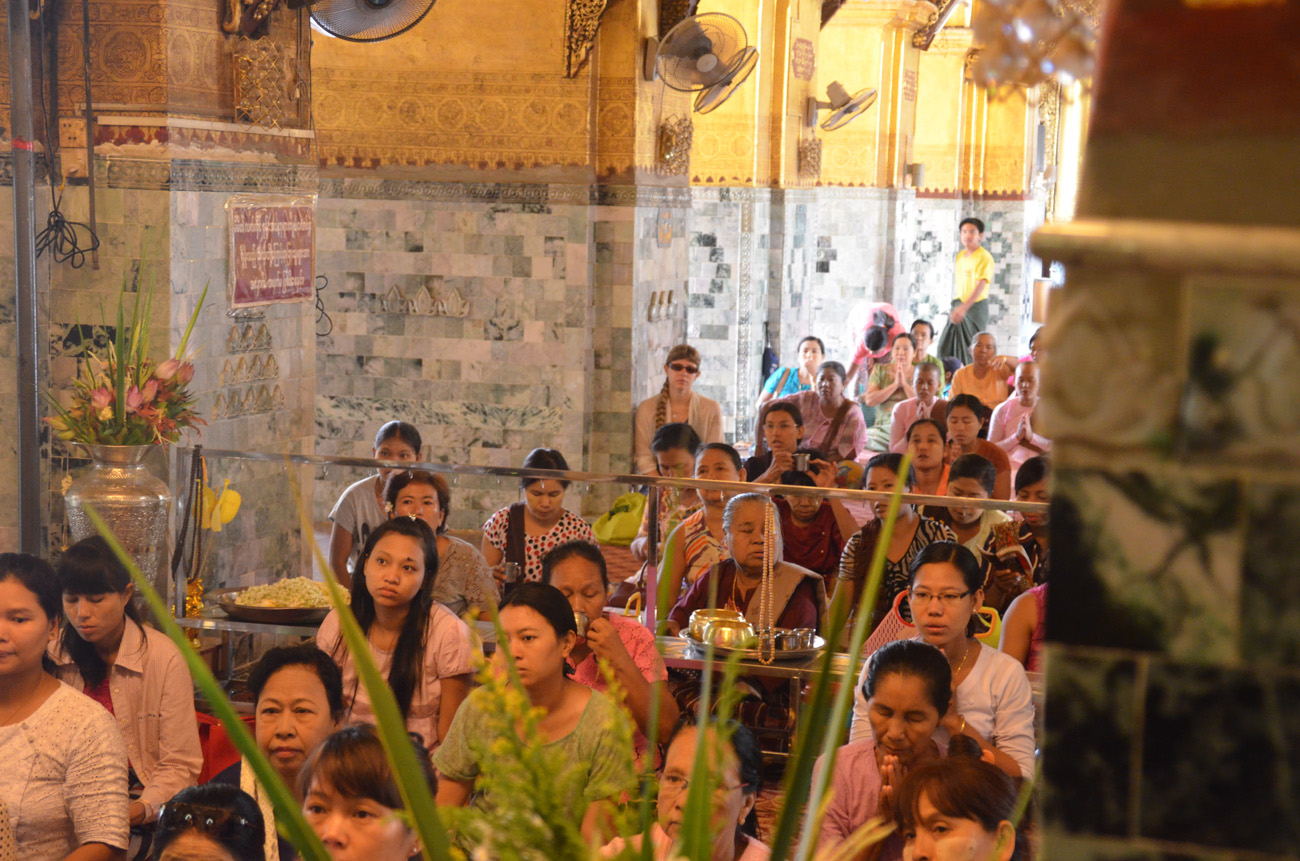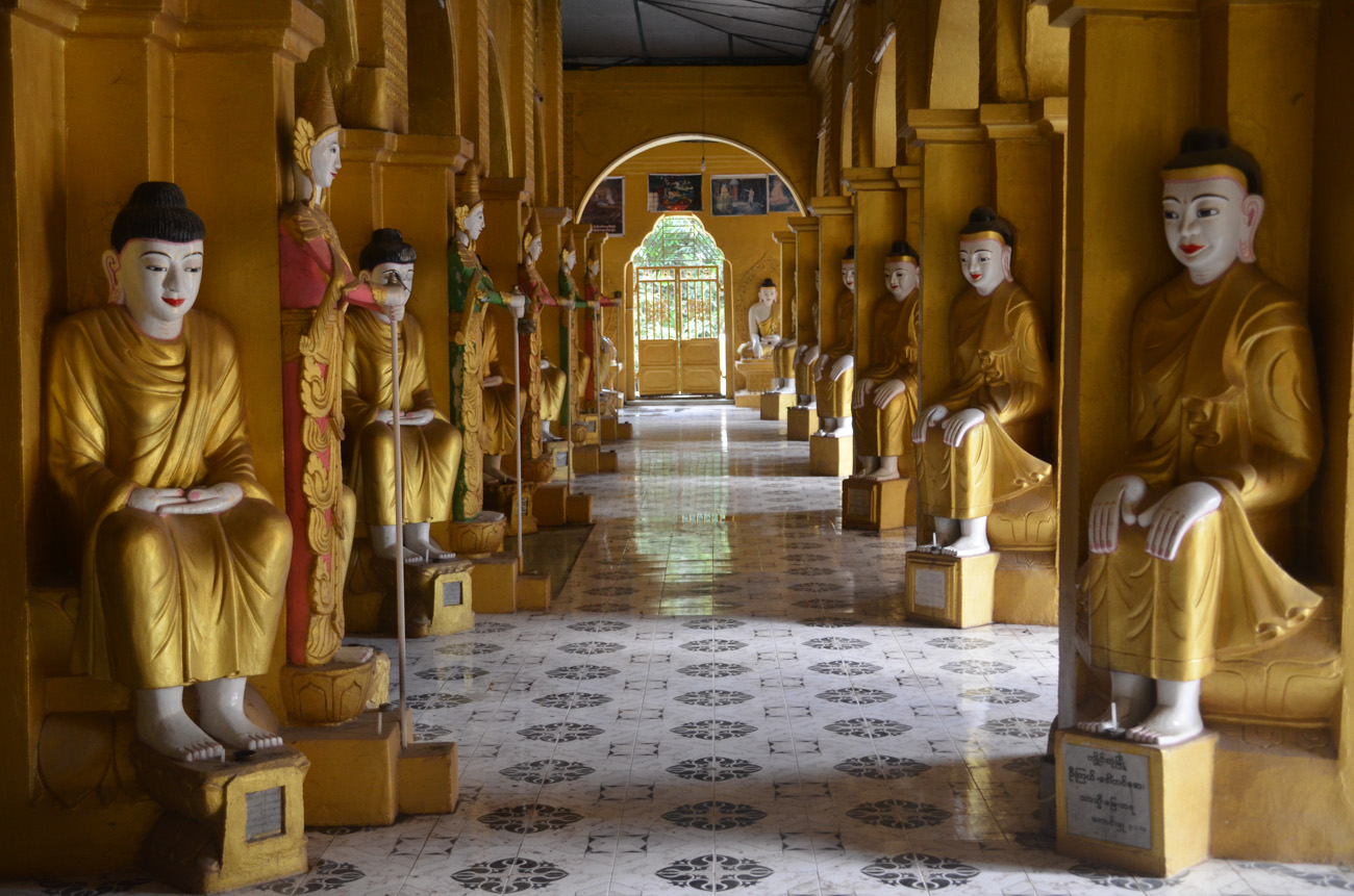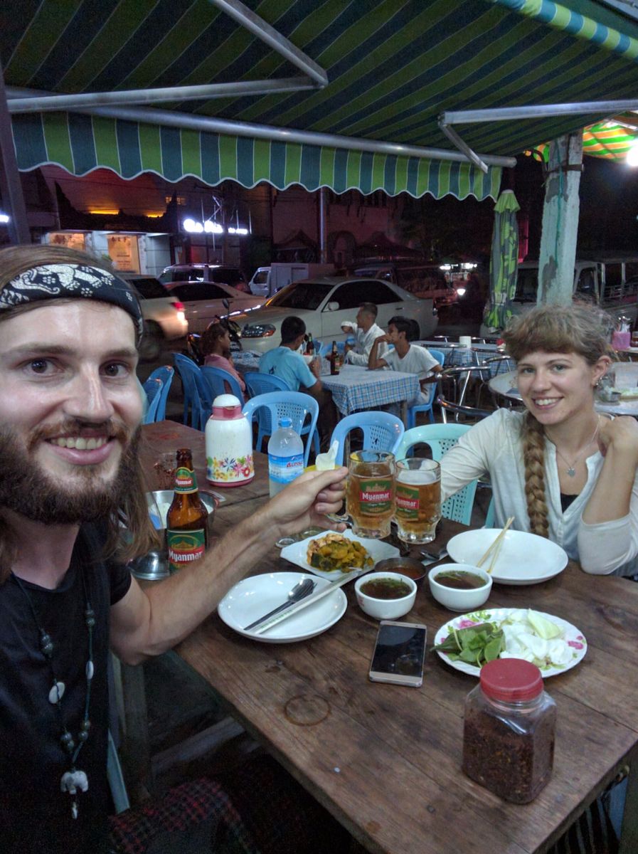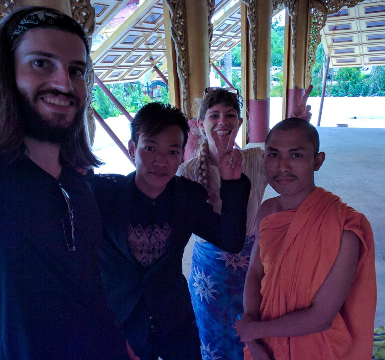 Wir besuchten sogar einige der Pagoden, wie z.B. die Mahumuni Pagode mit einer großen Buddhafigur, die tonnenweise mit Goldblättern beklebt wurde. Cool fanden wir auch die Pagodengruppe Kuthodaw (die sich auch ‚das größte Buch der Welt‘ nennt, da sie auf 729 Steinplatten die Geschichte Buddhas erzählt) und den Palast des ehemaligen Königs mit einem großen Wassergraben an dem sich abends alle Pärchen der Stadt zum Turteln zu treffen schienen. Die Leute aus Myanmar flirten glaub gerne ;)