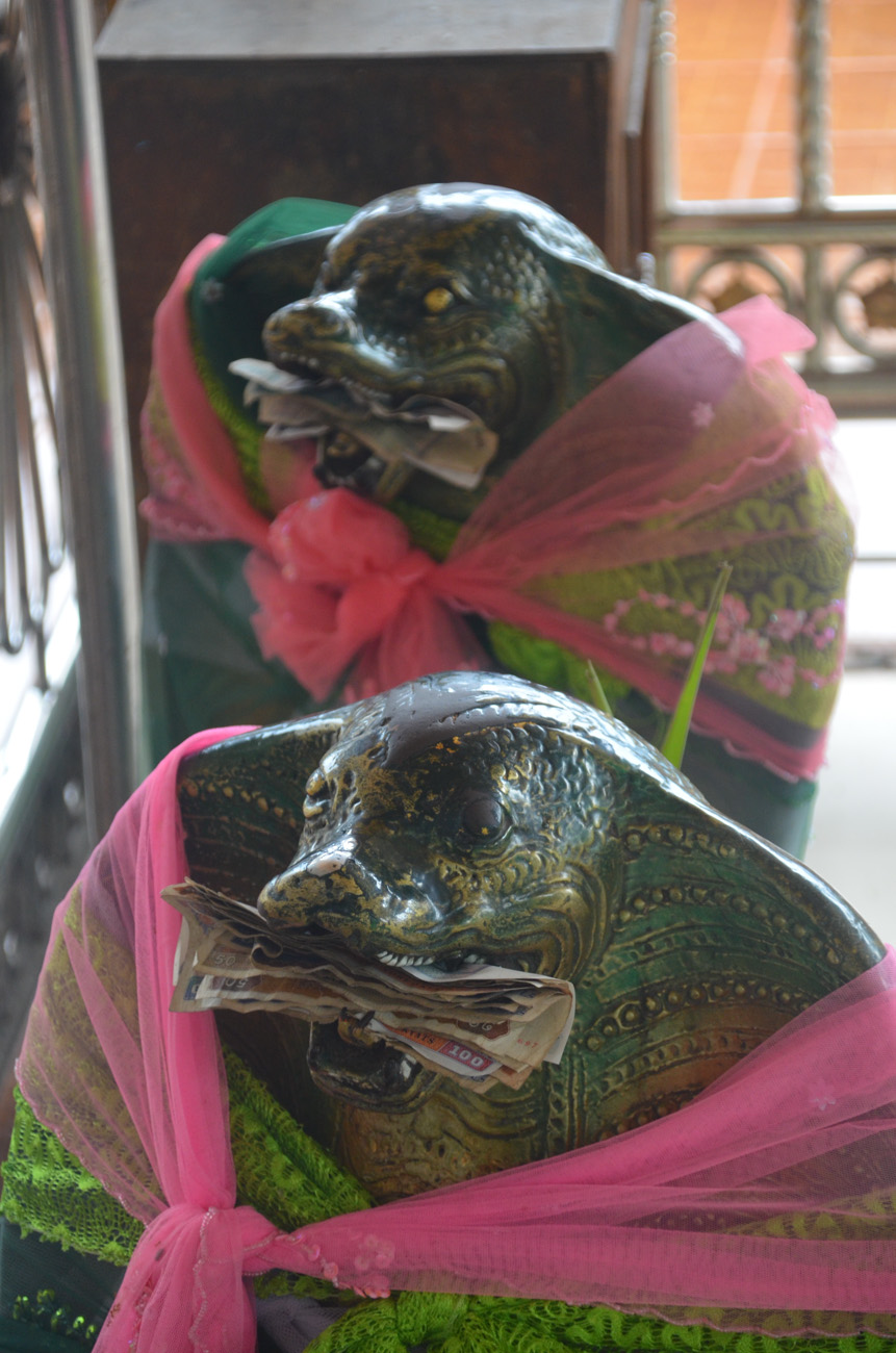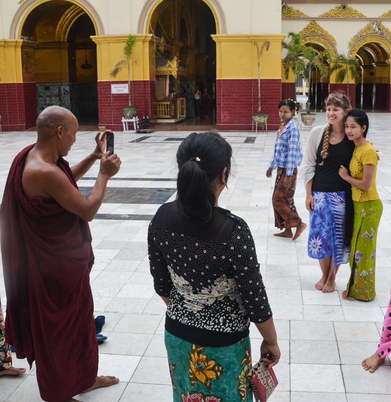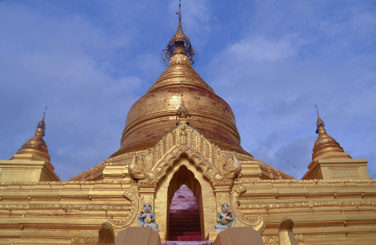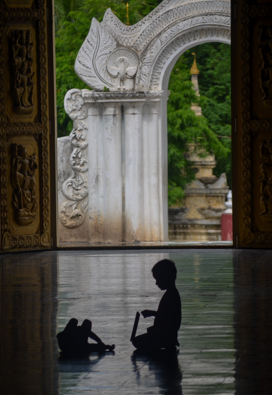 Wir besuchten sogar einige der Pagoden, wie z.B. die Mahumuni Pagode mit einer großen Buddhafigur, die tonnenweise mit Goldblättern beklebt wurde. Cool fanden wir auch die Pagodengruppe Kuthodaw (die sich auch ‚das größte Buch der Welt‘ nennt, da sie auf 729 Steinplatten die Geschichte Buddhas erzählt) und den Palast des ehemaligen Königs mit einem großen Wassergraben an dem sich abends alle Pärchen der Stadt zum Turteln zu treffen schienen. Die Leute aus Myanmar flirten glaub gerne ;)
