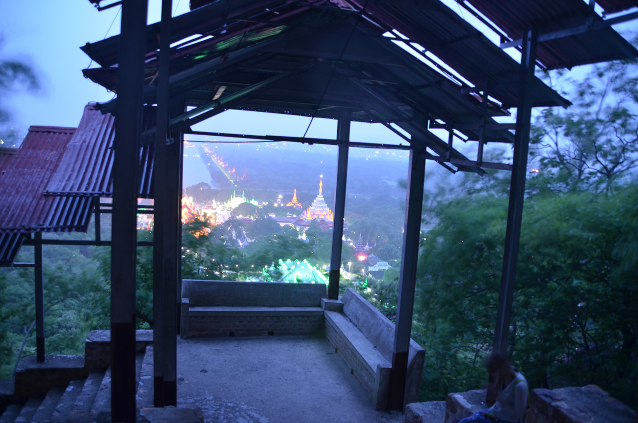 - Als wir den Mandalay-Berg nach oben stiegen kamen wir immer wieder an Rastplätze mit Inschriften