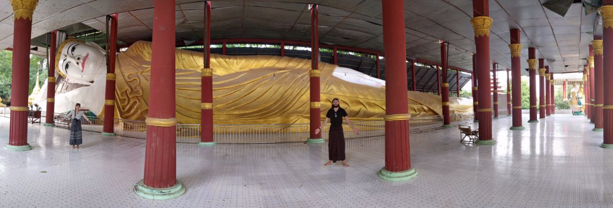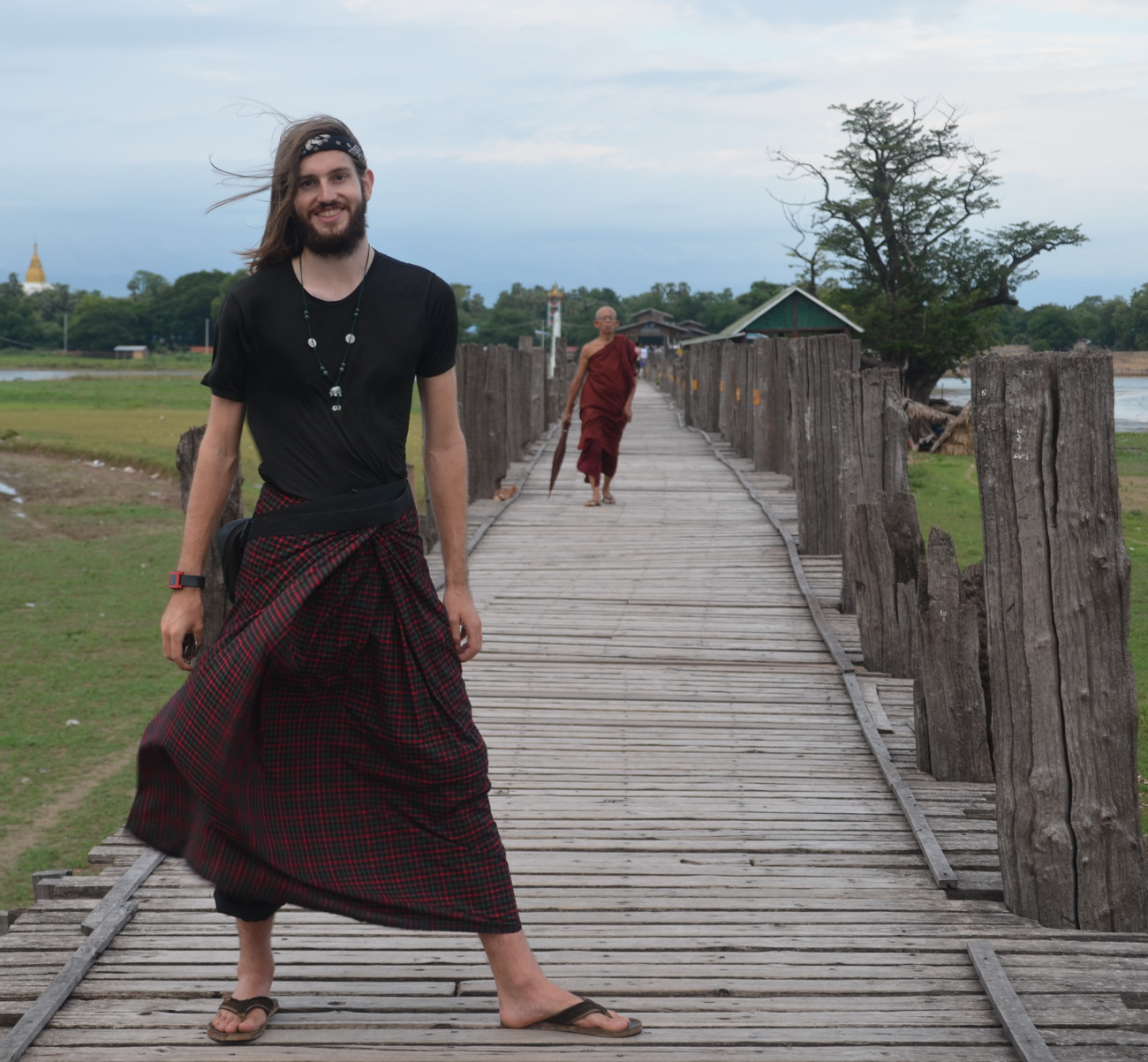 Die Stadt Amarapura liegt südlich von Mandalay und ist unter anderem für ihre ausgezeichnete Stoffqualität bekannt. Viele lassen sich hier einen Longhi schneidern – eine Art Rock den hier von Männern und Frauen getragen wird. Für Yannik war das Loghi-tragen besonders interessant, da er außer hier und in Bali bisher noch nie die Chance hatte, guten Gewissens im Rock auf die Straße zu gehen ;)