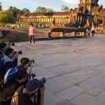 Am beeindruckensten waren die Tempel Angkor Wat (was übersetzt Tempelstadt bedeutet) und Angkor Thom ( auf deutsch große Stadt). Angkor Wat hat uns vor allem durch seine vielen Türmchen und schöne Verzierungen gefallen, die bei Sonnenaufgang einen tollen Kontrast zum gefärbten Himmel darstellen. Wohingegen Angkor Thom uns schlichtweg durch seinen riesigen Mauerumriss mit 4 Toren in die jeweiligen Himmelsrichtungen beeindruckt hat. Der größte Tempel im Angkor-Thom-Gelände ist der Bayon mit unzähligen Buddhagesichtern, unter denen man sich ganz schön beobachtet vorkommt. Marlis ihr persönlicher Favorit war zusätzlich der Ta Phrom Tempel, der Kampf gegen den Dschungel schon fast verloren hat und größenteils unter dem Gewicht riesiger Bäume zusammenbrach um wieder zu Erdboden zu werden.