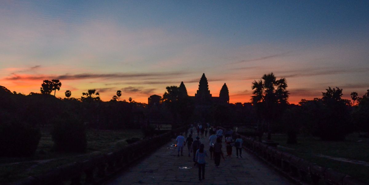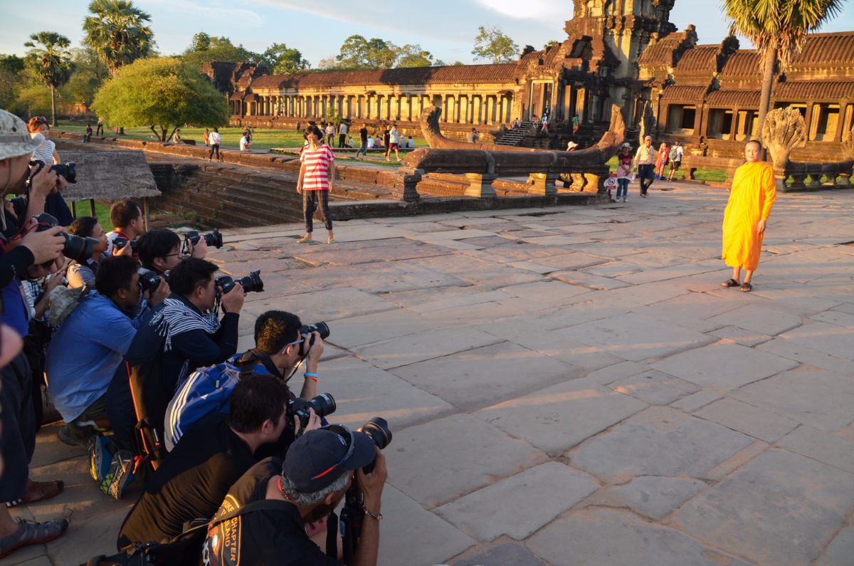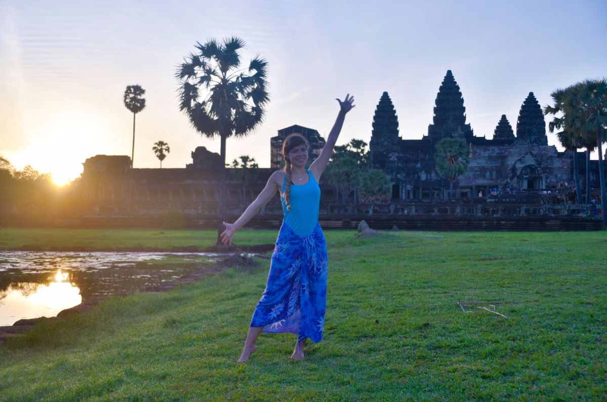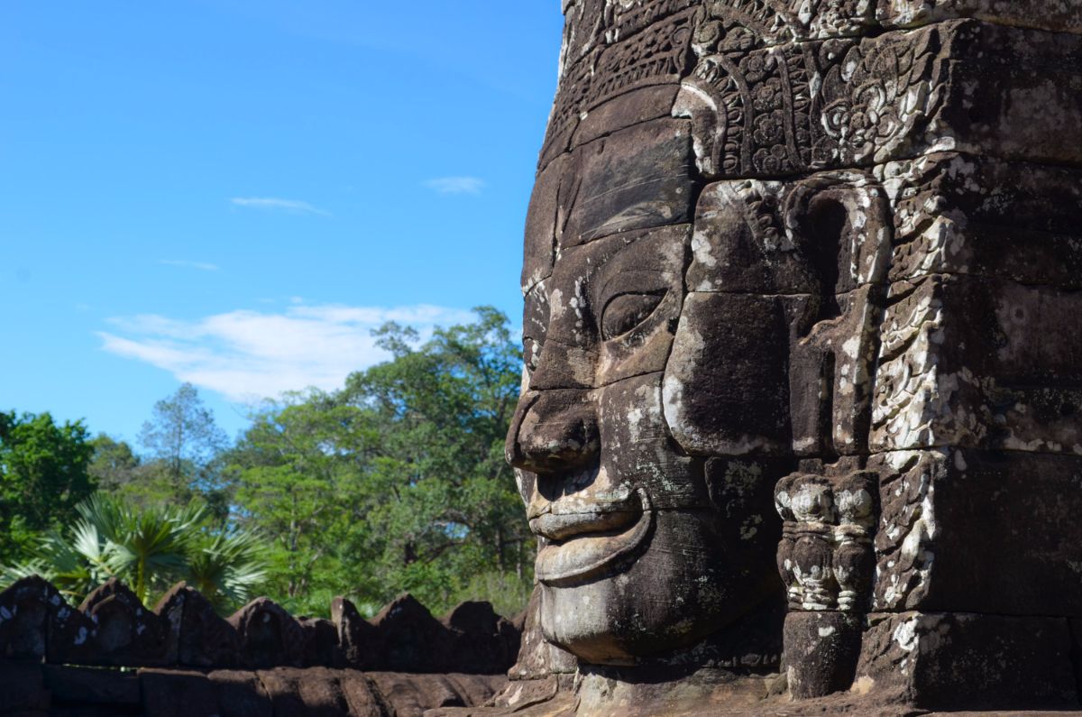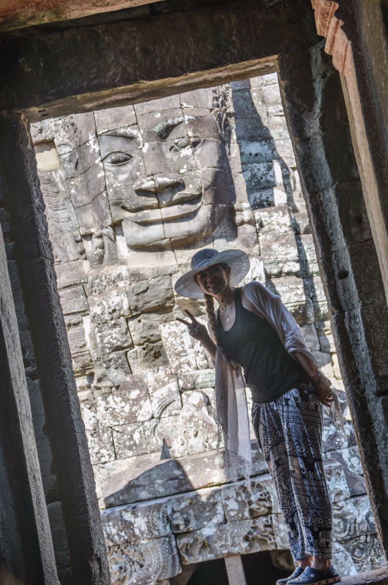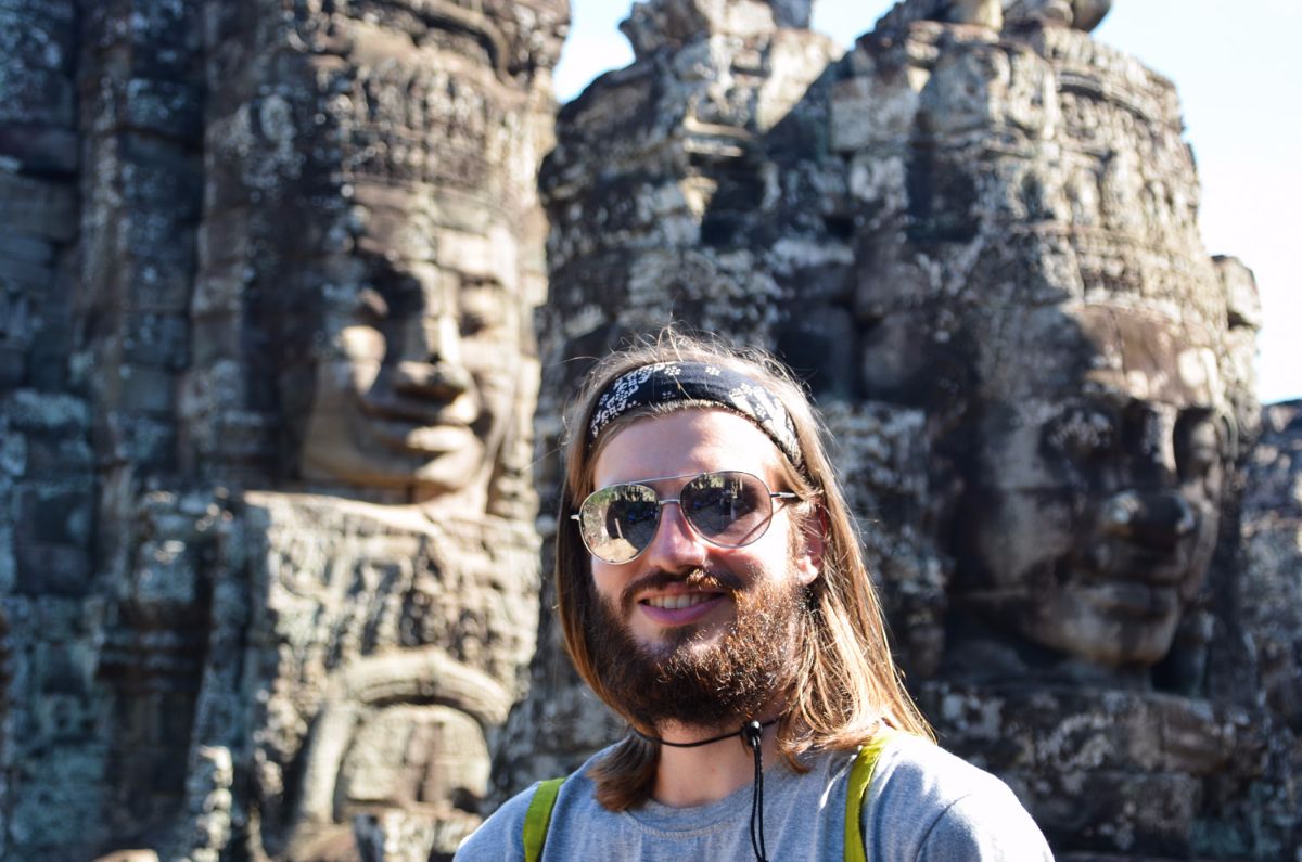 Am beeindruckensten waren die Tempel Angkor Wat (was übersetzt Tempelstadt bedeutet) und Angkor Thom ( auf deutsch große Stadt). Angkor Wat hat uns vor allem durch seine vielen Türmchen und schöne Verzierungen gefallen, die bei Sonnenaufgang einen tollen Kontrast zum gefärbten Himmel darstellen. Wohingegen Angkor Thom uns schlichtweg durch seinen riesigen Mauerumriss mit 4 Toren in die jeweiligen Himmelsrichtungen beeindruckt hat. Der größte Tempel im Angkor-Thom-Gelände ist der Bayon mit unzähligen Buddhagesichtern, unter denen man sich ganz schön beobachtet vorkommt. Marlis ihr persönlicher Favorit war zusätzlich der Ta Phrom Tempel, der Kampf gegen den Dschungel schon fast verloren hat und größenteils unter dem Gewicht riesiger Bäume zusammenbrach um wieder zu Erdboden zu werden.