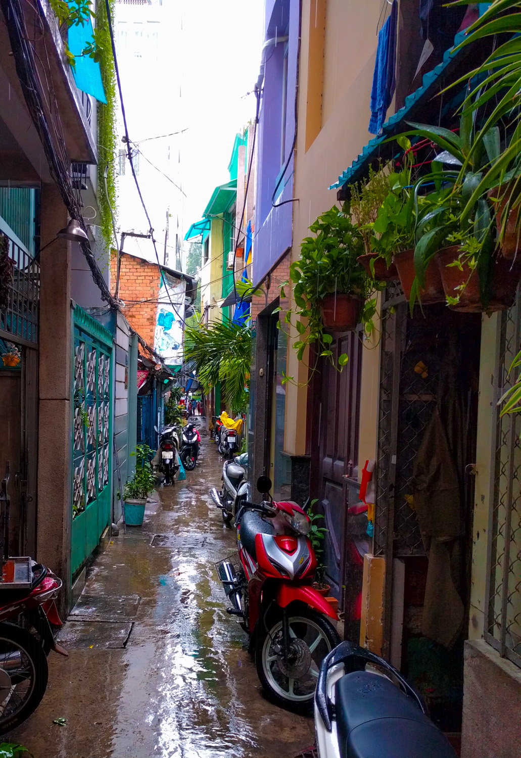 Wir wohnten hier bei einer Vietnamesin zu Hause in einer winzigen Seitenstraße, die von den meisten beim Vorbeigehen einfach übersehen wird. Hier zwischen zwei Hochhäusern haben sich zahlreiche Blechhütten und schmale Häuschen versteckt – ein bisschen wie in einem kleinen Labyrinth bei dem man sich nicht sicher sein kann, wo der nächste Gang hinführen könnte. Unser Zimmer war aber überraschend modern und schön eingerichtet ♡