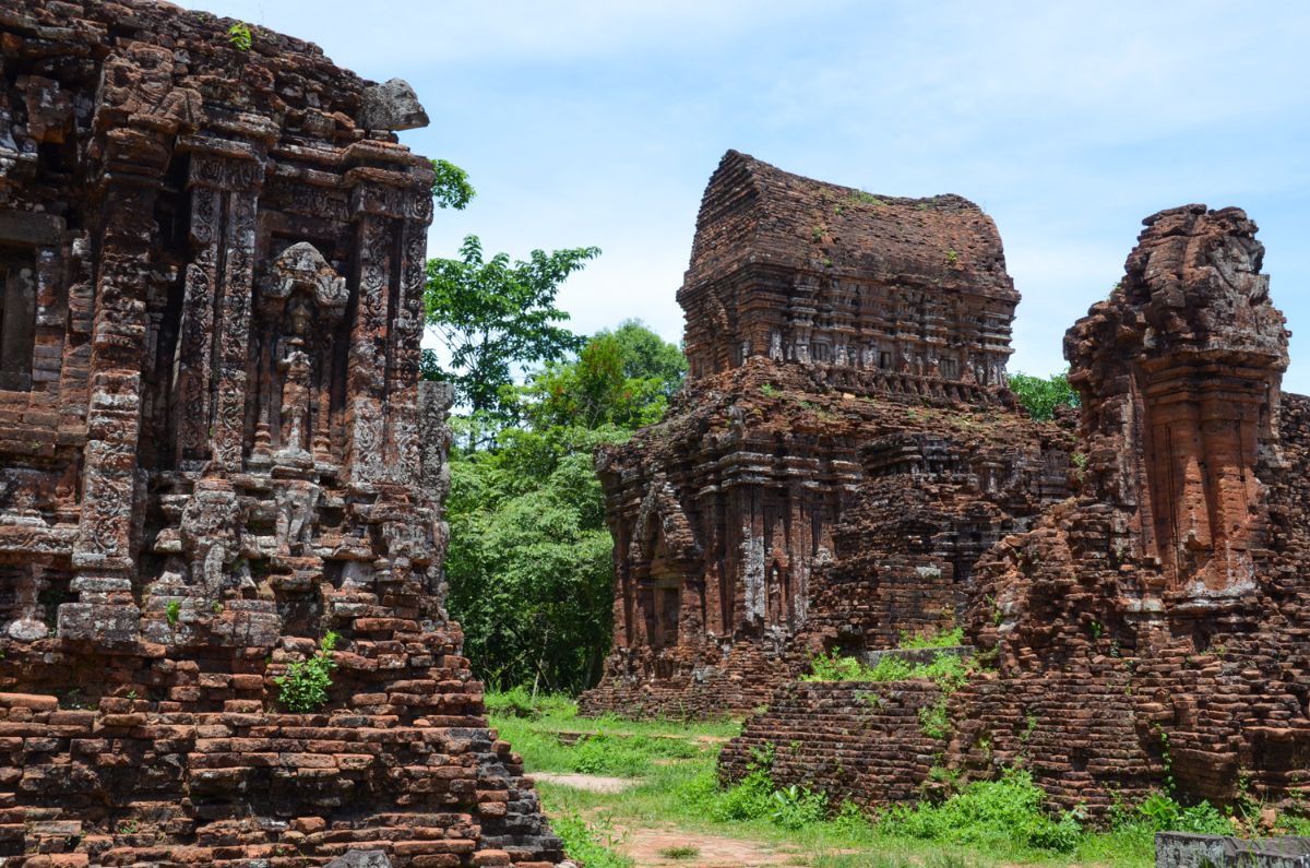 Im Umland besichtigen wir die Ruinen von Mỹ Sơn. Diese ehemaligen hinduistischen Tempel fanden wir besonders deshalb interessant, da die Erbauer keinen Mörtel verwendet haben um die Steine aufeinander zu bauen. Sie haben vermutlich in Feinstarbeit Stein für Stein aufeinander gesetzt und in Passform gebracht – wie genau weiß jedoch keiner. Da kein Mörtel verwendet wurde, der leider meist der Grund ist, dass sich Pflanzen und Pilze ansiedeln können, sind die Steine noch heute sauber und super erhalten. Das glaubt ihr nicht? Überzeugt euch selbst in unserer Galerie…
