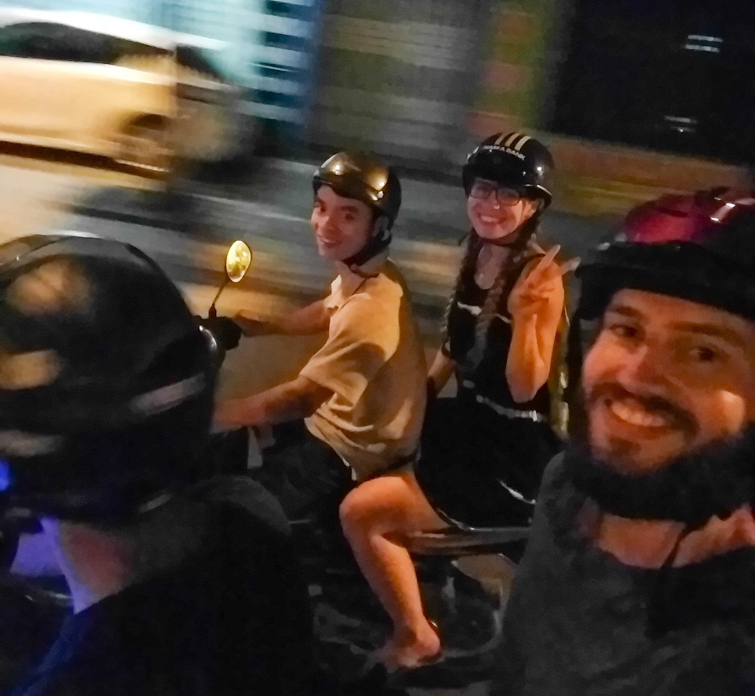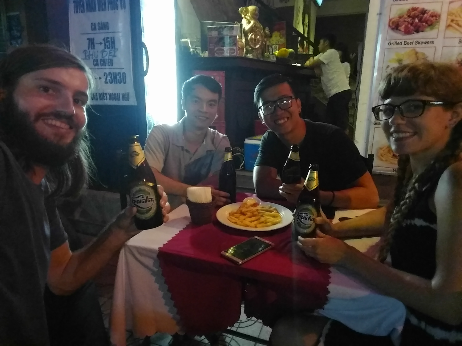 Etwas weiter entfernt war die Thien Tu Pagode, daher fuhren wir dort mit dem Cyclo hin (super witzig xD) und abends genossen wir das kühlere Wetter am Flussufer und auf der Walkingstreet. Besonders gut gefallen hat uns eine kleine Bootsfahrt mit unseren Gastgebern sowie die leckeren traditionellen Spezialitäten von Huda-Bier bis zu Lotus-Süßigkeiten ♡