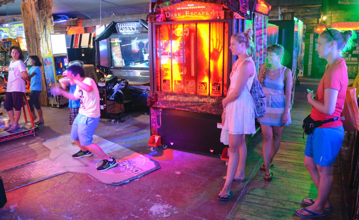 - Asiaten beim Arcade-spielen beobachten