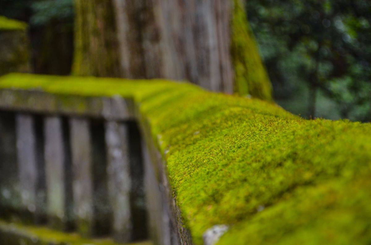 - Moosbewachsene Laterne auf dem Tempelgelände