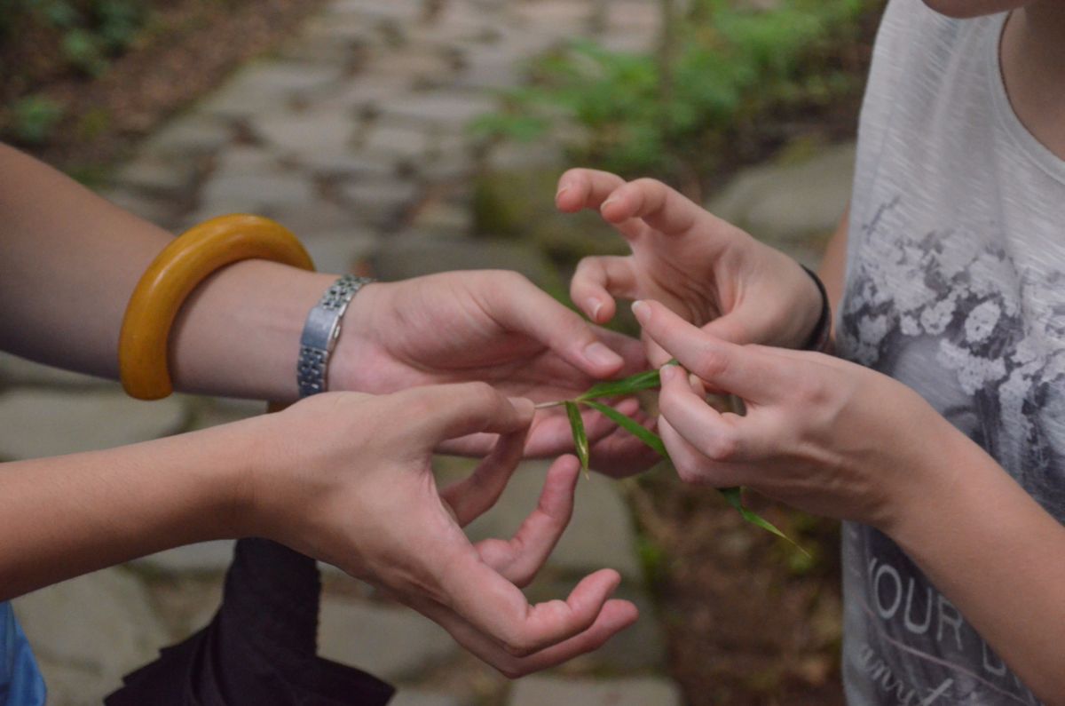 - Pärchen müssen mit Daumen und kleinem Finger Bambusblätter knoten um herauszufinden wie gut ihr Teamwork istt