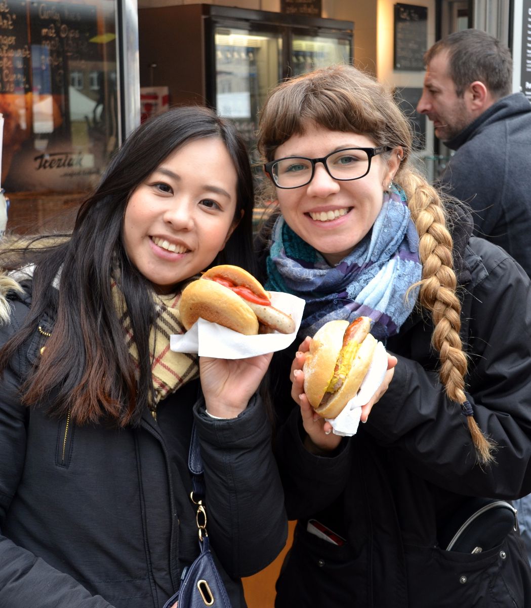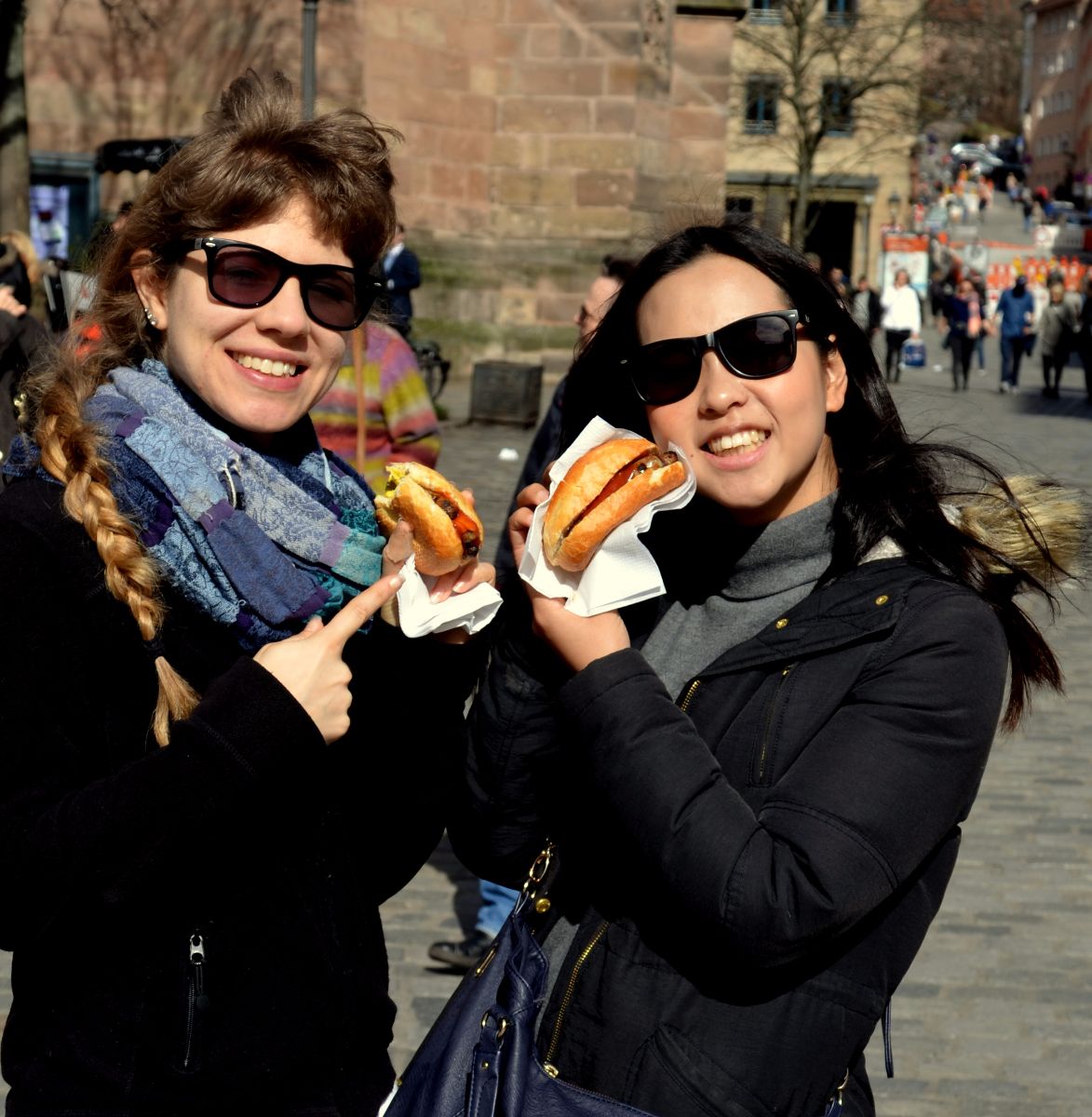 Auch unser erster Besuch in Nürnberg war ein echtes Highlight! Wie zuvor in Würzburg ging es erst einmal den Berg nach oben zur beeindruckenden Kaiserburg, dem Wahrzeichen der Stadt. Bei einem entspannten Bummel durch die historische Altstadt besuchten wir auch die alten Kirchen St. Sebald und St. Lorenz (beides ziemliche Gegensätze zu japanischen Tempeln oder Schreinen ;P). Am besten gefallen hat es uns aber auf den zahlreichen Brücken der Stadt, vor allem abends auf dem Henkersteg (lasst euch von dem Namen nicht abschrecken xD) und auf der Museumsbrücke mit Blick auf das Spital. Ein witziges Erlebnis war auch das traditionelle Brezen-Frühstück (kein Schreibfehler, nur Bayrisch) das uns unseren Freunde Ioni und Ionko gezeigt haben. Das Brezen-Haus in dem wir waren hatte sogar einen Drive-In, bei dem man sich seine Brezeln direkt hätte mitnehmen können. So etwas hatten wir noch nie gesehen.