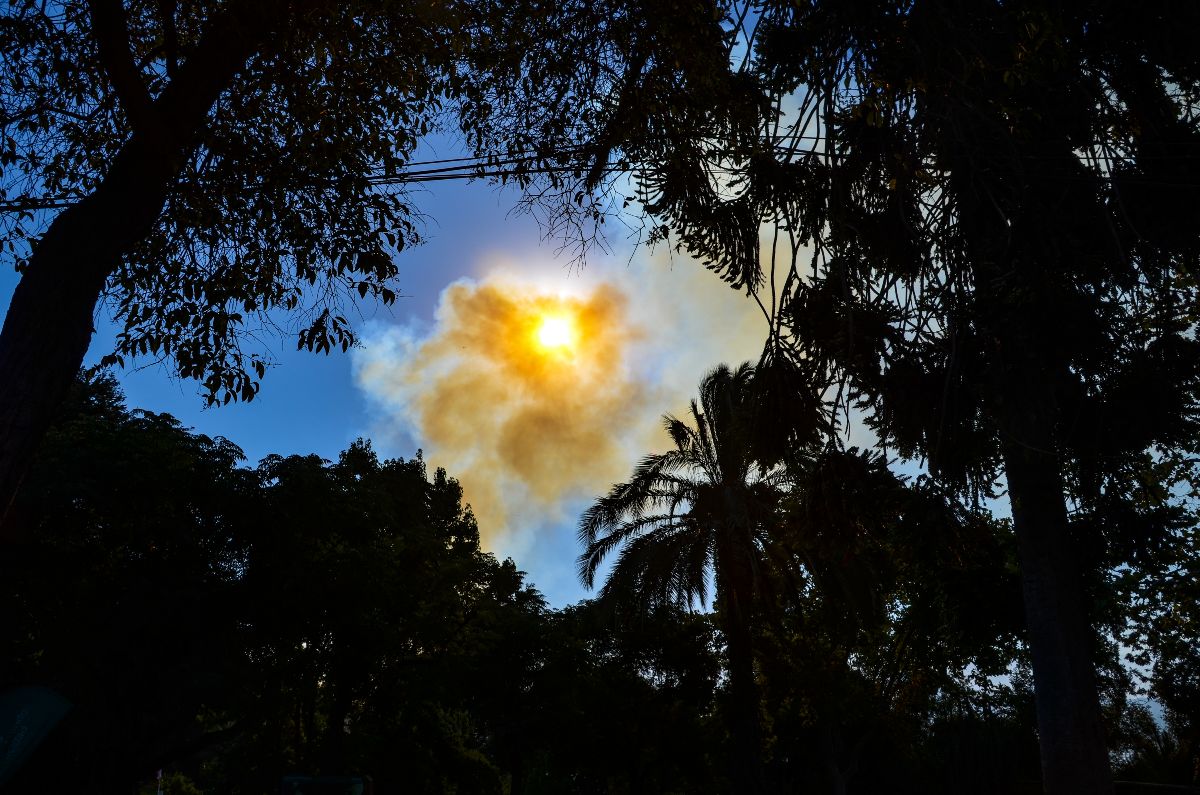 - Als wir auf dem Berg waren konnten wir einen Waldbrand beobachten dessen Rauch alles orangenes Licht getaucht hat